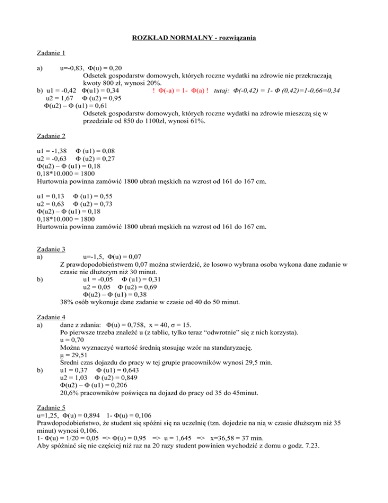 ROZKŁAD NORMALNY - rozwiązania Zadanie 1 a) u - E-SGH