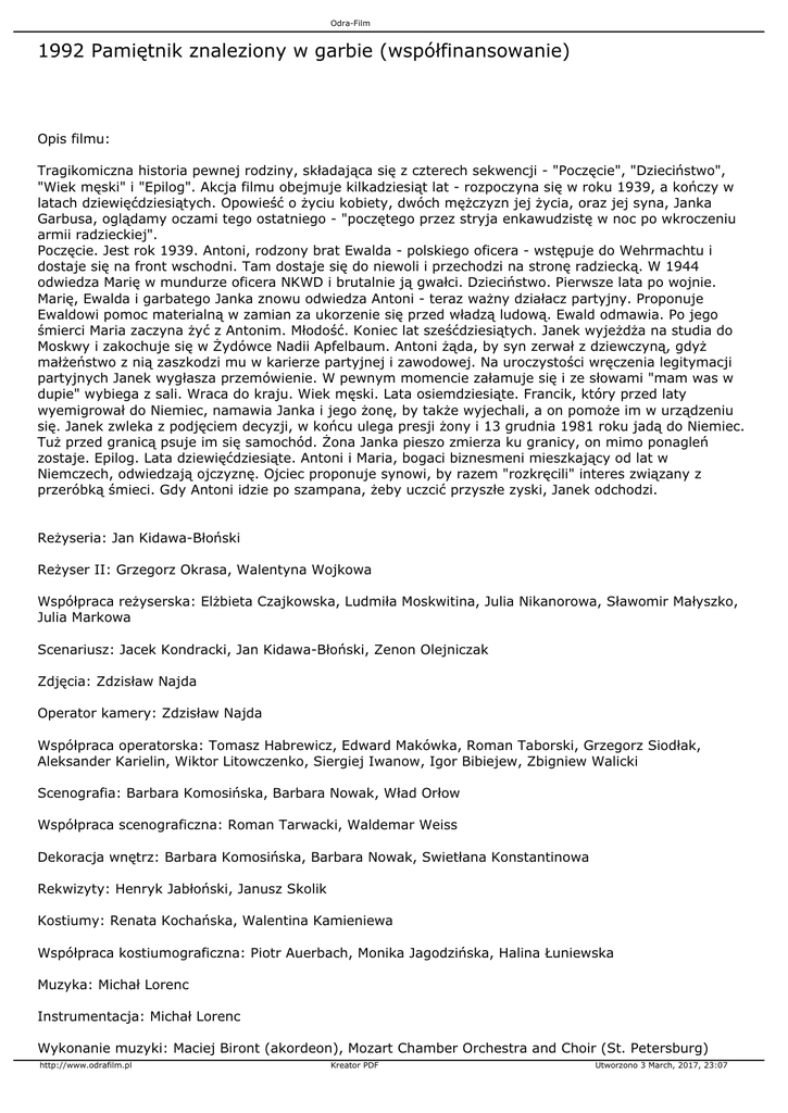 1992 Pamiętnik znaleziony w garbie (współfinansowanie) - Odra-Film