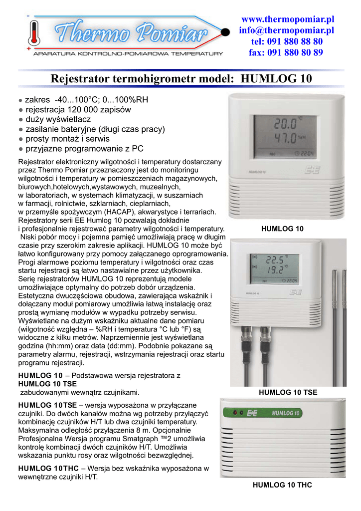 Rejestrator termohigrometr model: HUMLOG 10