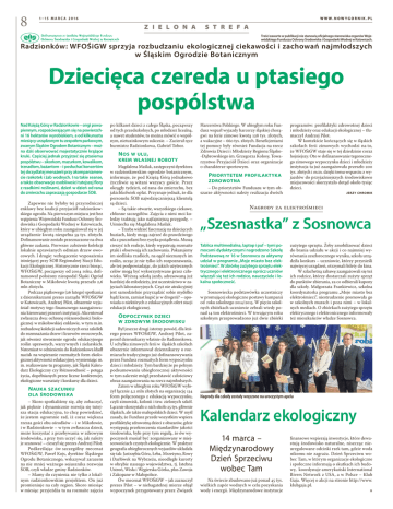 8 W W W.NOW YGORNIK.PL 1–15 M A R C A 2 016 Z I E L O N A S T R E F A Treści zawarte w publikacji nie stanowią oficjalnego stanowiska organów Wojewódzkiego Funduszu Ochrony Środowiska i Gospodarki Wodnej w Katowicach. Radzionków: WFOŚiGW sprzyja rozbudzaniu ekologicznej ciekawości i zachowań najmłodszych w Śląskim Ogrodzie Botanicznym Dziecięca czereda u ptasiego pospólstwa Nad Księżą Górą w Radzionkowie – ongi powapiennym, rozpościerającym się na powierzchni 16 hektarów wyrobiskiem, a od kilkunastu miesięcy urządzonym tu zespołem parkowym, zwanym Śląskim Ogrodem Botanicznym – można dziś obserwować majestatycznie krążące kruki. Częściej jednak przyjrzeć się ptasiemu pospólstwu – sikorkom, mazurkom, kowalikom, trznadlom, bażantom – i posłuchać koncertów tej skrzydlatej menażerii przy akompaniamencie rzekotek i żab wodnych. I na takie seanse, a także obserwacje osobliwości tutejszej flory z rzadkimi roślinami, dzień w dzień od rana do zmierzchu zapraszają gospodarze ŚOB. Zapewne nie byłoby tej przyrodniczej enklawy bez koalicji przyjaciół radzionkowskiego ogrodu. Na pierwszym miejscu jest bez wątpienia Wojewódzki Fundusz Ochrony Środowiska i Gospodarki Wodnej w Katowicach, który w ubiegłym roku zaangażował się w jej urządzenie kwotą niespełna 59 tys. złotych. Dofinansowanie zostało przeznaczone na dwa główne zadania. Pierwsze: założenie kolekcji lokalnie uprawianych odmian drzew owocowych. I drugie: wzbogacenie wyposażenia istniejącej przy ŚOB Regionalnej Stacji Edukacji Ekologicznej. Historycznie rzecz biorąc, WFOŚiGW, począwszy od 2004 roku, dofinansował położony nieopodal Śląski Ogród Botaniczny w Mikołowie kwotą przeszło 2,6 mln złotych. Podczas piątkowego (26 lutego) spotkania z dziennikarzami prezes zarządu WFOŚiGW w Katowicach, Andrzej Pilot, obszernie wyjaśniał motywy tego finansowego zaangażowania kierowanej przezeń instytucji. Akcentował zwłaszcza dwa: ochronę różnorodności biologicznej w mikołowskiej enklawie, w tym m.in. rozbudowę kolekcji sadowniczych oraz szkółek do rozmnażania drzew i krzewów owocowych, jak również stworzenie ogrodu edukacyjnego roślin uprawnych, warzywnych i zielarskich. Natomiast w odniesieniu do Radzionkowa kładł nacisk na wspieranie rozmaitych form ekologicznej aktywności edukacyjnej, wymieniając m. in. realizowane tu programy, jak Śląski Kalendarz Ekologiczny czy Różnorodność – potęga życia, dopełnianych przez liczne konferencje, ekologiczne warsztaty i konkursy dla dzieci. N auka szacunku dla środowiska – Skoro spotkaliśmy się, aby zobaczyć, jak pięknie i dynamicznie rozwija się tutejsza stacja edukacyjna, to chcę powiedzieć, że jestem ogromnie rad, iż coraz większa rzesza gości obu ośrodków – i w Mikołowie, i w Radzionkowie – w tym zwłaszcza dzieci, może korzystać z przebywania w zdrowym środowisku, a przy tym uczyć się, jak należy je szanować – cieszył się prezes Andrzej Pilot. Podkreślając ów szczególny mecenat WFOŚiGW, Paweł Kojs, dyrektor Śląskiego Ogrodu Botanicznego, wskazywał zarazem na nie mniej ważnego sojusznika rozwoju ŚOB, czyli władze gminy Radzionków. – Mamy do czynienia nie tylko z lokalnym radzionkowskim projektem. On już promieniuje na cały region. Skoro miesiąc w miesiąc przyjeżdża tu na rozmaite zajęcia po kilkaset dzieci z całego Śląska, począwszy od tych przedszkolnych, po młodzież licealną, a nawet studentów, to można mówić o wspólnym, nietuzinkowym sukcesie. – Zacierał ręce burmistrz Radzionkowa, Gabriel Tobor. N os w ulu , krem własnej roboty Magdalena Maślak, zastępczyni dyrektora w radzionkowskim ogrodzie botanicznym, informuje, że pod Księżą Górą jednakowo życzliwie są witani wszyscy goście. Przez okrągły tydzień, od rana do zmierzchu, bez jakichkolwiek opłat. Przyznaje jednak, że dla personelu ŚOB najwdzięczniejszą klientelą są dzieci. – Są takie otwarte, wszystkiego ciekawe, chłonne szczegółów. Zajęcia z nimi moi koledzy traktują jako najfajniejszą przygodę. – Uśmiecha się Magdalena Maślak. – Trzeba widzieć fascynację na dziecięcych buziach, kiedy mogą zajrzeć do prawdziwego ula z pszczołami bez ryzyka pożądlenia. Muszą cieszyć ich reakcje, kiedy wypatrują rozmaite ptaki i obserwują ich zachowania. Pokazujemy im siedliska rzadkich, na ogół nieznanych im roślin, ucząc je nie tylko ich rozpoznawania, ale też podpowiadając, do jakich użytecznych celów mogą być wykorzystywane przez człowieka. Wyższą szkołą jazdy, adresowaną już bardziej do młodzieży, jest uczestnictwo w zajęciach laboratoryjnych. Czyż nie atrakcyjniej jest samodzielnie przyrządzić sobie mydełko bądź krem, zamiast kupić je w drogerii? – opowiada o niektórych z edukacyjnych ofert stacji edukacji ekologicznej. O dpoczynek dzieci w zdrowym środowisku Był jeszcze drugi istotny powód, dla którego prezes WFOŚiGW, Andrzej Pilot, zaprosił dziennikarzy właśnie do Radzionkowa. U schyłku zimowych ferii w śląskich szkołach obszernie informował dziennikarzy o rozmiarach tradycyjnego już dofinansowywania przez Fundusz rozmaitych form wypoczynku dzieci i młodzieży. Tym bardziej że po pełnym podsumowaniu ubiegłorocznej aktywności w tym zakresie mógł przedstawić całościowy obraz zaangażowania na rzecz najmłodszych. Zatem w ubiegłym roku WFOŚiGW wyłożył łącznie 5,2 mln złotych na organizację 134 form połączonego z edukacją wypoczynku, czyli zimowisk, kolonii i tzw. zielonych szkół. Łącznie skorzystało z nich około 25 tys. głównie śląskich, ale także małopolskich dzieci. W myśl zasady, że Fundusz przede wszystkim wspiera profilaktykę zdrowotną dzieci z obszarów, gdzie występują przekroczenia standardów jakości środowiska, było przy tym regułą, że ów wypoczynek musiał być zorganizowany w miejscowościach czystych ekologicznie. W pr