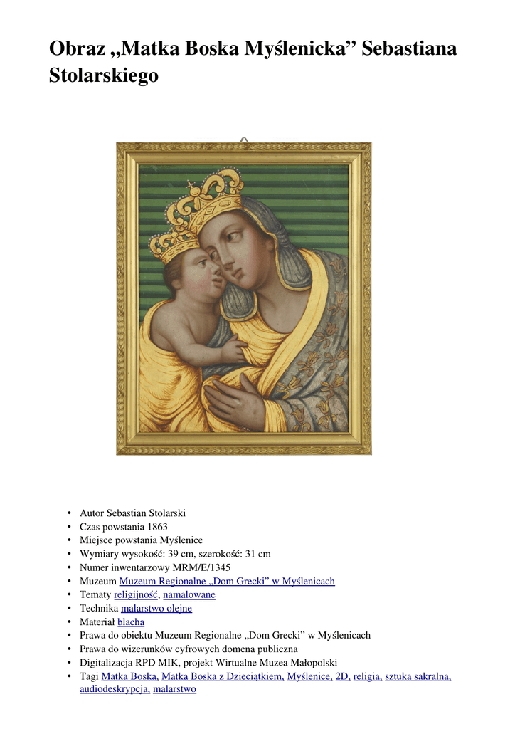 Matka Boska Myślenicka - Wirtualne Muzea Małopolski