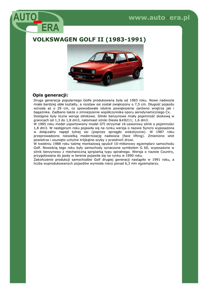 Opis rodziny: VOLKSWAGEN GOLF II. - AUTO-ERA