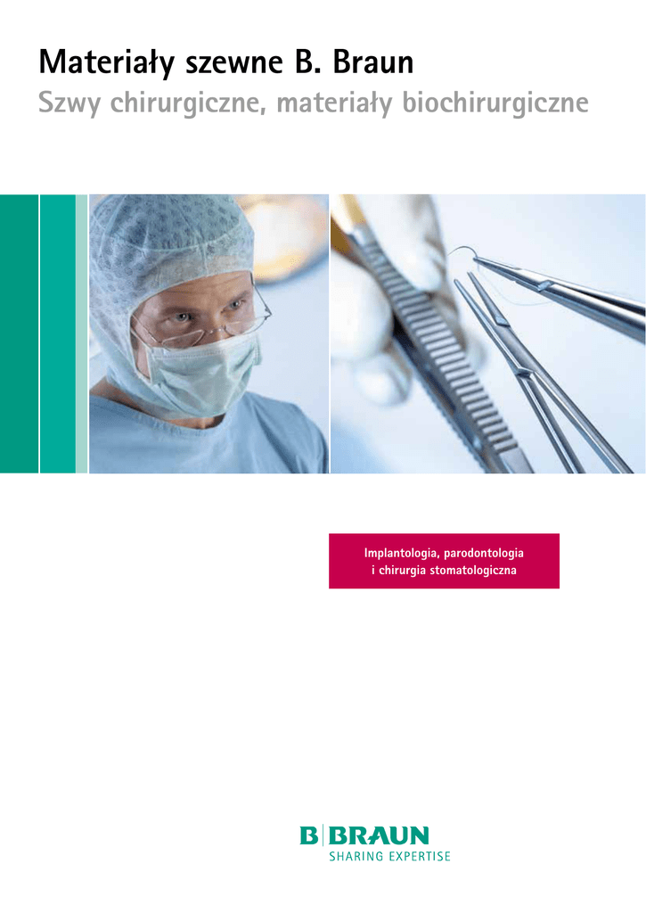 Materiały szewne B. Braun Szwy chirurgiczne, materiały biochirurgiczne Implantologia, parodontologia i chirurgia stomatologiczna Materiały szewne – kompleksowe wyposażenie dla gabinetów chirurgii stomatologicznej. Katalog zawiera ponad 80 rekomendowanych kombinacji igła-nić, które stanowią jedynie część oferowanego przez firmę B. Braun asortymentu. W przypadku zainteresowania kombinacją, nie ujętą w materiale, prosimy o kontakt z działem sprzedaży lub naszym przedstawicielem handlowym. Katalog z pełnym asortymentem materiałów szewnych oraz dane kontaktowe znajdą Państwo na stronie internetowej- www.chifa.com.pl. +++ Monosyn® Quick +++ Monosyn® +++ MonoPlus +++ Safil® Quick+ +++ Safil® +++ Novosyn® Premilene® +++ Dafilon +++ PremiCron® +++ Dagrofil® +++ Supramid +++ Silkam® +++ B. Braun Oznaczenia igieł Rekomendowane igły w chirurgii jamy ustnej Celem łatwej identyfikacji poszczególnych typów igieł B. Braun stosuje następujące oznaczenia oferowanych igieł: A B C 12 D Krzywizna koła Przekrój igły Kształt końca igły Długość igły Grubość/Typ igły MP zakończenie Micro- point - D 3/8 koła R okrągła H 1/2 koła S tnąca (przyostrzona) F 5/8 koła plastyczna/ kosmetyczna T Trokarowa Odnosi się do odległości pomiędzy zakończeniem igły, a nasadą igły, mierzonej w mm po krzywiźnie igły s igła pogrubiona/wzmocniona/ utwardzona Przykład: H S 21 Przykład: HS 21½ koła, igła odwrotnie tnąca, długość 21 mm Krzywizna koła Najczęściej stosowane typy i rozmiary igieł: H F D 3/8 koła H 1/2 koła F 5/8 koła Symbol igły D Krzywizna i przekrój Zakres rozmiarów HR 13- 26 mm okrągła 1/2 koła HS 15- 21 mm odwrotnie tnąca 1/2 koła DS 13- 24 mm odwrotnie tnąca 3/8 koła DSMP 11- 19 mm odwrotnie tnąca 3/8 koła plastyczna/ kosmetyczna GR 19 mm Nazwa igły okrągła prosta Wszystkie igły tnące B. Braun posiadają krawędź tnącą na zewnątrz (igły odwrotnie tnące). Inne G - prosta 3 Nowa generacja igieł – IGŁY DSMP Unikalne zakończenie i nowoczesna geometria, zapewniają doskonały efekt kosmetyczny. Charakterystyka igieł DSMP Smukły profil końcówki igły umożliwia łatwiejsze i atraumatyczne przejście przez tkanki Doskonała wytrzymałość i odporność na zginanie Wprowadzenie wygładzonego i spłaszczonego trzonu zapewnia jej doskonałą stabilność w imadle Igły Easyslide- najlepszy wybór w chirurgii stomatologicznej Igły wykonane ze stali nierdzewnej typu 300 Optymalna zdolność penetracji nawet po wielokrotnym wkłuciu Specyficzny kształt czubka igły Niezmienna jakość podczas przejścia przez tkanki (wkłucie po wkłuciu) Specjalnie zaprojektowane powleczenie Wysoka odporność na zginanie i precyzja wykonania Odpowiednio dobrana stal nadaje igłom większą siłę Nadzwyczajna odporność na zginanie i łamanie 4 Łatwa identyfikacja rodzaju szwów chirurgicznychkodowanie kolorami Szwy wchłanialne Monosyn® Quick Monosyn® Safil® Quick+ Dafilon® Supramid Silkam® Novosyn® Safil® Szwy niewchłanialne Premilene® Dagrofil® Kodowanie produktów w celu łatwej identyfikacji opakowań Poszczególne kody materiałów szewnych składają się z 1 litery i 7 cyfr. Np. Kod C1048042 Opakowanie 36 saszetek Safil® kolor fioletowy, USP 2/0, HR 26, 70 cm. Litera oznacza ilość saszetek w opakowaniu, cyfry opisują rodzaj szwu i igły wraz z jego parametrami, podwiązki-nici przycięte i szwy na rolce. C B G M opakowanie 36 saszetek opakowanie 24 saszetki opakowanie 12 saszetek opakowanie 6 saszetek 5 Szwy monofilamentowe niewchłanialne Implantologia, chirurgia stomatologiczna, parodontologia Dafilon® Premilene® Struktura Monofilament Struktura Monofilament Skład chemiczny Polipropylen Skład chemiczny Poliamid Powleczenie brak Powleczenie brak Rozmiary 10/0-2 Rozmiary 11/0-2 Kolor niebieski Kolor niebieski, czarny, bezbarwny Igła Nazwa Kolor USP Długość Ilość/opak. Kod Katalogowy 1/2 koła 15 mm Premilene® niebieski 4/0 75 36 C2090259 Dafilon® niebieski 3/0 45 36 C0935410 1/2 koła 18 mm Premilene® niebieski 5/0 45 36 C2090264 3/8 koła 12 mm Premilene® niebieski 3/0 45 36 C2090205 Dafilon® niebieski 4/0 45 36 C0932086 Dafilon® niebieski 5/0 45 36 C0932078 Premilene® niebieski 5/0 45 36 C2090212 Dafilon® niebieski 4/0 45 36 C0932132 Premilene® niebieski 4/0 45 36 C2090213 Premilene® niebieski 5/0 45 36 C2090219 Premilene® niebieski 4/0 45 36 C2090220 Dafilon® niebieski 4/0 45 36 C0932205 Premilene® niebieski 7/0 45 36 C2090606 Premilene® niebieski 6/0 45 36 C2090607 Premilene® niebieski 5/0 45 36 C2090608 Premilene® niebieski 7/0 45 36 C2090617 Premilene® niebieski 6/0 45 36 C2090618 Premilene® niebieski 5/0 45 36 C2090619 3/8 koła 16 mm Premilene® niebieski 6/0 45 36 C2090628 Premilene® niebieski 5/0 45 36 C2090629 Dafilon® niebieski 5/0 45 36 C0936154 Premilene® niebieski 5/0 45 36 C2090675 Premilene® niebieski 4/0 45 36 C2090676 Dafilon® niebieski 4/0 45 36 C0936235 3/8 koła 16 mm 3/8 koła 19 mm 3/8 koła 11 mm 3/8 koła 13 mm 3/8 koła 19 mm * Zdjęcia przedstawiają rzeczywiste rozmiary igieł; więcej konfiguracji igła-nitka znajdą Państwo w Katalogu Materiałów Szewnych 2012 6 Premilene® in vivo Implantologia, parodontologia, chirurgia stomatologiczna Rekomendowane rozmiary i grubości do podanych wskazań: Okolica zębów przednich i cięcie pionowe DSMP 11 lub 13 7/0 Okolica zębów przedtrzonowych DSMP 13 7/0 Cięcia proste i dowierzchołkowo przesunięte płaty DSMP 11 lub 13 6/0 Pojedyncze szwy w obszarze cięcia pionowego przy zastosowaniu Premilene® DSMP 11, 7/0. Gojenie pooperacyjnie- 1 tydzień. Poziomy szew materacowy w obszarze zębów przednich Premilene® DSMP 13, 7/0. Pojedynczy szew od strony policzkowej z użyciem Premilene® DLm6s, 8/0 w celu dokładnego pierwotnego zamknięcia po zabiegu mikrochirurgicznym. Dokładne wielowarstwowe zamknięcie rany, po odtwórczym zabiegu chirurgicznym na przyzębiu w obszarze zębów bocznych z 