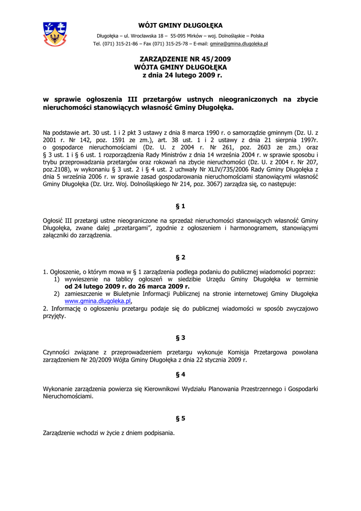 ZARZĄDZENIE NR 45/2009 WÓJTA GMINY DŁUGOŁĘKA z dnia 24