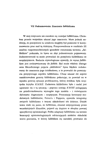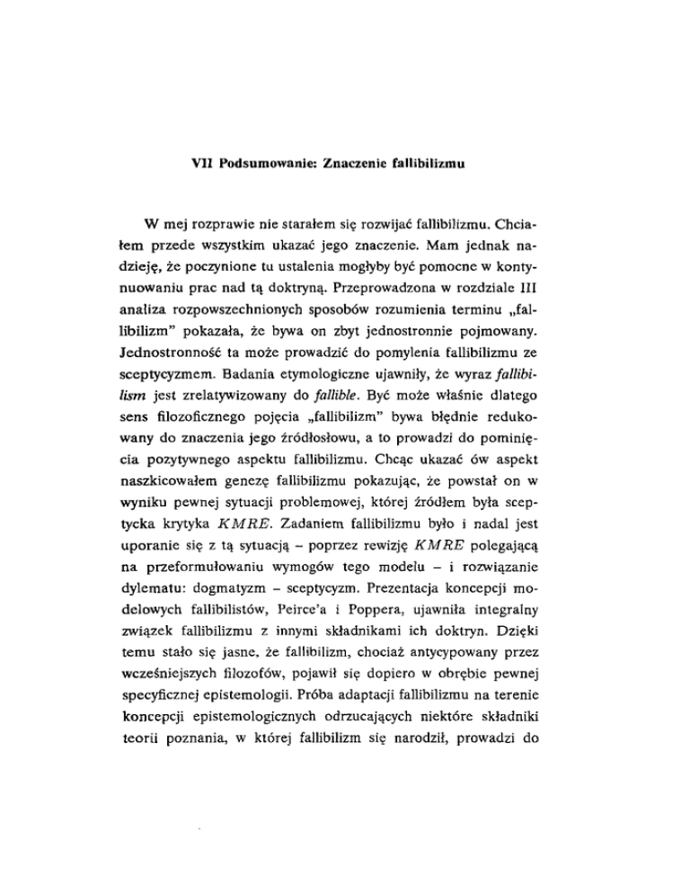 VII Podsumowanie: Znaczenie fallibilizmu
