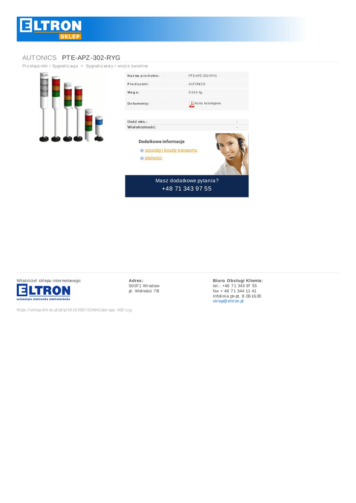 AUT ONICSPT E-APZ -302-RYG Pr z eł ącz ni ki i Sygnal i z acj a > Sygnal i z ator yi wi eż eświ etl ne N a z wa p ro d u ktu : PT E-APZ -302-RYG P ro d u c en t: AUT ONI CS Wa g a : 0.54 9 kg Ka rta ka ta logowa D o ku m en ty: Ilośćmin.: Wielokrotność: - Maszdodatkowepytania? +48713439755 Wł aści ci el skl epui nter netowego: Adres : 50-07 1Wr ocł aw pl .Wol ności 7 B https://skl ep.el tr on.pl /pl /p/18 18 3937 424641/pte-apz -302-r yg Biuro O bs ługiKlienta : tel .:+48 7 134397 55 fax+48 7 13441141 Infol i ni apn-pt.8 .00-16.00 skl ep@ el tr on.pl