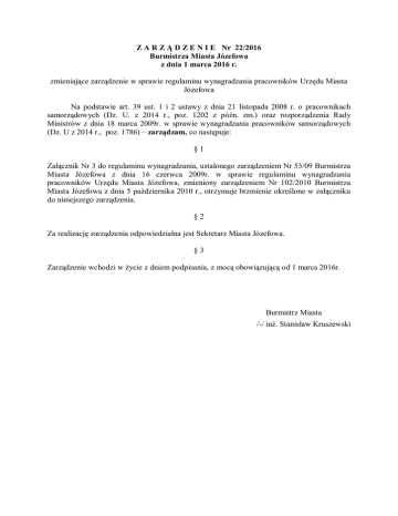 ZARZ Ą DZENIE Nr 22/2016 Burmistrza Miasta Józefowa z dnia 1