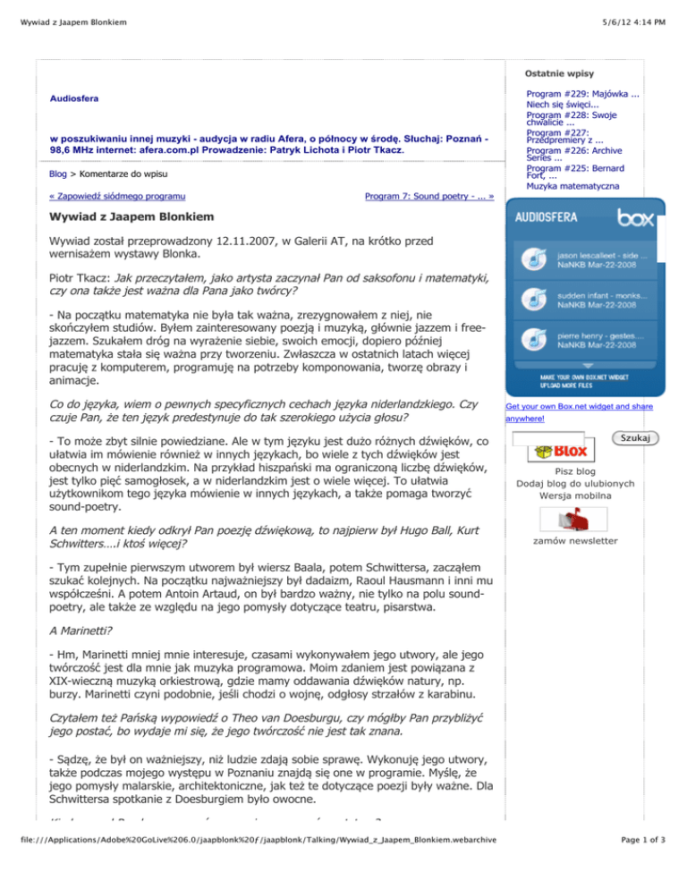 file:///Applications/Adobe%20GoLive%206.0/jaapblonk%20ƒ/jaapblonk/Talking/Wywiad_z_Jaapem_Blonkiem.webarchive