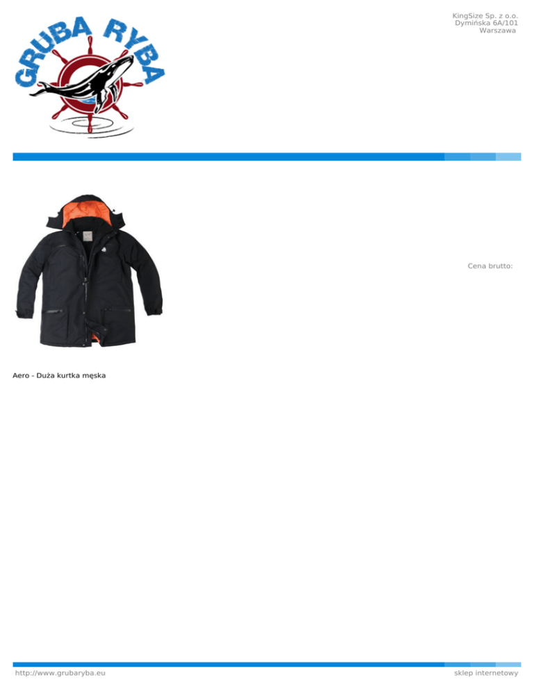 KingSize Sp. z o.o. Dymińska 6A/101 Warszawa Cena brutto: Aero - Duża kurtka męska http://www.grubaryba.eu sklep internetowy