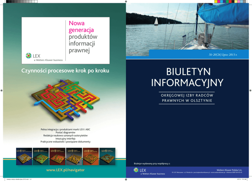 Nowa generacja produktów informacji prawnej Czynności procesowe krok po kroku Nr 20(26) lipiec 2013 r. BIULETYN INFORMACYJNY O K RĘGOW EJ IZBY R A DCÓW PR AW N YCH W O L SZ T Y N I E Pełna integracja z produktami marki LEX i ABC Postać diagramów Redakcja naukowa uznanych autorytetów Intuicyjny interfejs Praktyczne wskazówki i powiązane dokumenty Biuletyn wydawany przy współpracy z: www.LEX.pl/navigator biuletyn olsztyn okladka lipiec 2013.indd 1-2 Wolters Kluwer Polska S.A. 01-231 Warszawa ul. Płocka 5a [email protected] www.wolterskluwer.pl infolinia 0 801 04 45 45 9/7/13 7:51 AM Kodeks postępowania cywilnego Komentarz redakcja naukowa dr hab. Henryk Dolecki , SNSA prof. dr hab. Tadeusz Wiśniewski, SSN Autorzy: Helena Ciepła (dr, SSN); Henryk Dolecki (dr hab., SNSA); Tadeusz Domińczyk (SSN); Agnieszka Góra-Błaszczykowska (dr hab., SWSA); Antoni Górski (SSN); Irena Gromska-Szuster (SSN); Józef Iwulski (SSN); Andrzej Jakubecki (dr hab.); Grzegorz Jędrejek (dr hab.); Jan Klimkowicz (dr); Iwona Koper (SSN); Krzysztof Knoppek (dr hab.); Grzegorz Misiurek (SSN); Piotr Pogonowski (prof. dr hab.); Zbigniew Strus (SSN); Tadeusz Wiśniewski (prof. dr hab., SSN); Dariusz Zawistowski (SSN); Tadeusz Zembrzuski (dr); Tadeusz Żyznowski (SSN) 4 Autorzy – wybitni przedstawiciele praktyki prawniczej i nauki – nie poprzestają tylko na ukazywaniu problemów, ale poszukując właściwej interpretacji przepisów, proponują możliwe rozwiązania. Poglądy doktryny przedstawiane są szeroko, z zaznaczeniem kwestii budzących kontrowersje. Kompleksowa analiza ustawy, ze wskazaniem właściwego sposobu jej stosowania, poparta bogatym orzecznictwem sądowym, będzie szczególnie przydatna dla praktyków. Drugie wydanie komentarza uwzględnia wszystkie nowelizacje ustawy – Kodeks postepowania cywilnego, które miały miejsce od czasu poprzedniej edycji, w tym tzw. dużą nowelę obowiązującą od 3 maja 2012 r. Omówiono również inne wprowadzone po tej dacie rozwiązania. Tom pierwszy (art. 1–366) obejmuje komentarz do przepisów ogólnych oraz przepisów części pierwszej dotyczących postępowania rozpoznawczego. W tomie drugim (art. 367–50537) przedstawiono analizę Państwo prawa jeszcze w budowie przepisów dotyczących środków odwoławczych, skargi Andrzej Zoll w rozmowie z Krzysztofem Sobczakiem kasacyjnej, skargi na orzeczenie referendarza sądowego, skargi o wznowienie postępowania, skargi o stwierdzenie niezgodności z prawem prawomocnego orzeczenia oraz kompleksowe omówienie zagadnień związanych z postępowaniami odrębnymi. Książka „Państwo prawa jeszcze w budowie” to seria wywiadów przeprowadzonych z prof. Andrzejem Zollem. Niewielu jest prawników, którzy wywarli tak duży wpływ na kształtowanie się standardów państwa prawa w Polsce. Tom trzeci (art. 506–729) stanowi przybliżenie regulacji związanych z postępowaniem nieprocesowym oraz postępowaniem w razie zaginięcia lub zniszczenia akt. Publikacja do nabycia w księgarni internetowej biuletyn olsztyn okladka lipiec 2013.indd 3-4 Książka dostępna w księgarni internetowej 9/7/13 7:51 AM Sprawy bieżące 19 czerwca 2013r., rozpoczęła się nowa, kolejna kadencja pełnienia przeze mnie zaszczytnej funkcji Dziekana. Dziękuję za wybór i mam nadzieję, że spełnię Państwa oczekiwania. Wybraliśmy również wszystkie pozostałe organy naszego ciechanowsko-olsztyńsko-ostrołęckiego samorządu. I mimo, że nasza izba jest postrzegana jako prężnie działająca, czeka nas dalej wiele pracy, udoskonalania i uzupełniania tego, co do tej pory razem zrobiliśmy. 1 Okręgowa izba Radców Prawnych w Olsztynie, to nie tylko dziekan i członkowie pozostałych organów, ale wszyscy radcowie i aplikanci radcowscy. Czekam więc na sygnały od Was, co zmienić, udoskonalić lub stworzyć na nowo. Dziękuję jednocześnie członkom organów poprzedniej kadencji, którzy poświęcając swój cenny czas pomagali w działalności naszej izby. Dziekan OIRP w Olsztynie Michał Korwek Organy OIRP IX Kadencji wybrane! Zgromadzenie Okręgowej Izby Radców Prawnych w Olsztynie w dniu 19 czerwca 2013 r. dokonało wyboru organów samorządu radcowskiego na IX Kadencję, na lata 2013-2016. Delegaci dokonali wyboru Michała Korwek – Dziekana OIRP na drugą kadencję. Zgromadzenie OIRP wybrało także 19 członków Rady OIRP, 9 członków Okręgowego Sądu Dyscyplinarnego, 9 członków Okręgowej Komisji Rewizyjnej, Rzecznika Dyscyplinarnego i jego 8 zastępców. Ponadto Zgromadzenie dokonało wyboru członka Krajowej Rady Radców Prawnych oraz 8 delegatów na Krajowy Zjazd Radców Prawnych w Warszawie. Na inauguracyjnym Posiedzeniu Rady OIRP w dniu 25 czerwca 2013 r. dokonano wyboru składu Prezydium OIRP w Olsztynie do którego weszli: Iwona Bendorf-Bundorf – Skarbnik Katarzyna Skrodzka-Sadowska – Sekretarz Małgorzata Łubińska – Wicedziekan Lech Ciarkowski – Wicedziekan. Tego samego dnia odbyło się pierwsze Posiedzenie Okręgowego Sądu Dyscyplinarnego. Przewodniczącą OSD wybrano Lucynę Duraj-Górecką, zaś Zastępcą Przewodniczącego OSD Annę Krawczyk. Wszystkim wybranym serdecznie gratulujemy i życzymy owocnej pracy podczas całej kadencji! biuletyn olsztyn srodek lipiec 2013.indd 1 8/7/13 4:04 PM Sprawy bieżące 2 Skład Rady OIRP w Olsztynie IX Kadencji Marcin Krzysztof Adamczyk (ur. 1976 r.), absolwent Wydziału Prawa Uniwersytetu w Białymstoku (2000 r.), doktor nauk prawnych – Wydział Prawa i Administracji Uniwersytetu Warmińsko – Mazurskiego w Olsztynie (2010 r.), żonaty, dwójka dzieci, od 2006 r. radca prawny, wspólnik Kancelarii Prawnej Marcin Adamczyk Jerzy Jankowski i Partnerzy, radca prawny w: Starostwie Powiatowym w Szczytnie, Członek Rady Programowej TVP Olsztyn, członek Rady Społecznej Wojewódzkiego Specjalistycznego Szpitala Dziecięcego w Olsztynie Członek Rady OIRP w Olsztynie VIII kadencji, Przewodniczący Komisji ds. doskonalenia zawodowego OIRP w 
