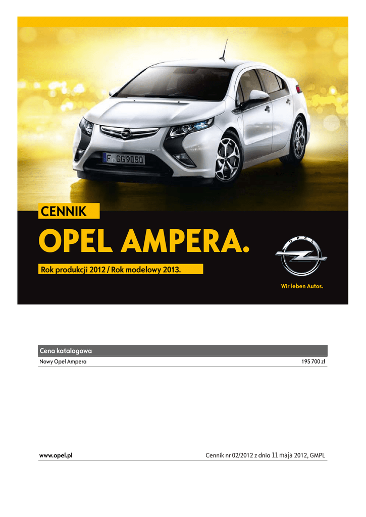 Opel Ampera ceny 2012 - Opel Ampera cennik 2012