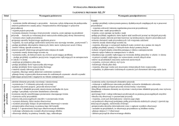 WYMAGANIA PROGRAMOWE TAJEMNICE PRZYRODY KL.IV Dział