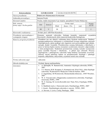 Podstawy fizjologii i patologii - Instytut Fizyki AJD, Częstochowa
