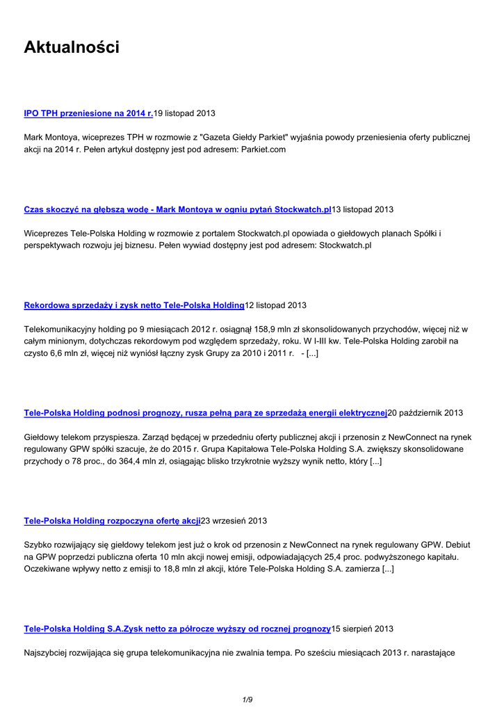Aktualności - TELE POLSKA Holding SA