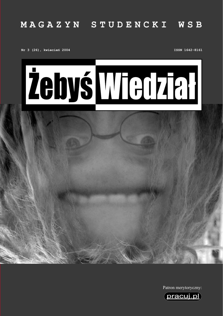 MAGAZYN Nr 3 (26), kwiecień 2004 STUDENCKI WSB ISSN 1642-8161 Patron merytoryczny: Spis treści: • • • • • • • • • • • • • • • • Tato ABC fotografii Serce na dłoni Między sercem a rozumem Nabór jak do pracy Studia uzupełniające magisterskie w WSB Po co nam studia? SUM - a plusów i minusów E-learning - nowoczesne studiowanie SUM w Bankowej „Czy warto mieć dyplom magistra?” Udogodnienia dla absolwentów licencjatu WSB w Poznaniu Przyjaciel - Gej Jestem na TAK Pomieszanie Ameryka ach Ameryka 3 4 6 7 8 9 10 11 12 14 15 16 17 18 19 20 REDAKTOR NACZELNY Marcin Czyrko ZASTĘPCY REDAKTORA NACZELNEGO Dominik Chuchracki, Łukasz Ratajczak DYREKTOR ARTYSTYCZNY: Agnieszka Michalak DYREKTOR STRATEGII i ROZWOJU: Magda Maludy KOREKTA: Anna Makowiecka Wstępniak ZDJĘCIA: Michał Szafran GRAFIKI: Olgins, jah W sklepie, przed wejściem do którego żaba zielona się uśmiecha, kupuję paczkę z przesłaniem Ministra Zdrowia, gumy – do żucia i Politykę – do czytania. Strona pierwsza: Raport. O kim? O paskowanym krawacie, biało-czerwonym, rzecz jasna. Ciche pomruki, szemrania, a z czasem skowyt i pisk lękliwy, niejako przestraszonych narastającym zagrożeniem. Wieczorem udaję się z wizytą do znajomych. Oni mają tę rzecz ze światem łączącą, czyli telewizor. Program 1 – krawat, Polsat – krawat, TVN – krawat. Wychodzę. Z rana kierowany chęcią przejrzenia poczty odpalam Internet. Po prostu nie do wiary. Główna informacja wirtualnej strony – niezmiennie krawat. Wyłączam. Nawet poczty nie sprawdzam. Na targu, gdzie świeże jaja znaleźć można – słyszę rozmowę dwóch starszych panów, bynajmniej nie z kabaretu. Tematy krawatów w modzie. Oglądając się za siebie odchodzę. Pomału zaczynam czuć się prześladowany. Przypomina to poniekąd czasy Gierka, kiedy to przed każdym dziennikiem Pierwszy Sekretarz był pokazywany z ludem i socjalistycznym dorobkiem w tle. Wszyscy byli szczęśliwi i czyści, pomimo iż pracowali. Za każdym razem akcja miała miejsce gdzieś indziej. Choć pewne wątki się nie zmieniały. Aż do znudzenia. Radość z wyrobów kolektywnej współpracy mogła i zapewne udziela się każdemu widzowi. Udaję się do centrum – może zdołam skryć się w tłumie. Sięgam pamięcią wstecz i coś przypomnieć sobie nie mogę. Takich kolorowych witryn sklepowych kiedyś nie było. Tak właściwie, to kiedyś niczego nie było, może poza kolejkami. Tylko czy ktoś zastanawia się jeszcze nad tym? Chociażby trochę? Zatrzymuję się przed sklepem z garniturami. Na wystawie nagle spostrzegam krawaty. W kropki i kratki, paskowane i cętkowane, no wszystkie. Biało czerwonych jednak nie ma. Jak na razie. Może zmieni się to po wyborach. Kto wie – możliwe, że wtedy będziemy nosić je wszyscy, jak niegdyś mundurki do szkoły. Ustawowo nakazane noszenie biało-czerwonych krawatów pod groźbą chłosty w miejscu publicznym. To może się przyjąć. Dlaczego by nie. A z czasem będziemy prezentować je z dumą. Narodową dumą. Jak przystało na pragnącego najprostszych rozwiązań Polaka. M.Cz. REDAKCJA: Gorski Michał, Kasia Krawczyk, Matysiak Agnieszka, Pierowicz Iwona, Maciej Dolata, Ola Fiałkowska, Magdalena Zwierzyńska, Michał Szafran, Przemysław Soczyński, Aleksandra Fiałkowska, Dariusz Dziamski, Jakub Jóźwiak, Magdalena Komorska, Maciej Borowiak SPECJALNE PODZIĘKOWANIA: Magdalena Podstawek PROJEKT, SKŁAD i ŁAMANIE Jan Ślusarski ADRES REDAKCJI al. Niepodległości 2, 61-874 Poznań Budynek PW 203 e-mail: [email protected] www.zebys-wiedzial.wsb.pl Redakcja nie odpowiada za treść umieszczonych reklam. Materiałów nie zamówionych nie zwracamy. Zastrzegamy sobie prawo do adjustacji tekstów. Poglądy wyrażone w tekstach nie muszą odpowiadać poglądom Redakcji i Wydawcy. WYDAWCA Wydawnictwo Wyższej Szkoły Bankowej al. Niepodległości 2, 61-874 Poznań UWAGA!!! KOLEKCJA ZDJĘĆ MICHAŁA SZAFRANA Tato Zapakowawszy do tornistra przygotowane przez mamę kanapki, trochę jeszcze zaspany wyszedłem do szkoły i wolnym krokiem ruszyłem przed siebie. Tego dnia lekcje zdawały nie różnić się jedna od drugiej. Na przerwach dzieci wciąż pełne powakacyjnej energii biegały bez opamiętania. Sam jeden, kierowany wówczas niezrozumiałym dla mnie przeczuciem, stałem na uboczu, przyglądając się wszystkiemu bezmyślnie. Gdy tylko wróciłem do domu, mama niemal w drzwiach przywitała mnie słowami: - Marcin, chodź szybciutko... W trzy godziny później siedzieliśmy razem w pociągu. Poinformowany, iż mam nic nie mówić, w szczelnie upchanym tobołami przedziale przyglądałem się w milczeniu pewnemu pasażerowi, który do złudzenia przypominał aktora z jakiegoś niedawno obejrzanego przeze mnie filmu. Jak miało się później okazać, narastające zdenerwowanie, jakie zaczęło się udzielać owemu panu, nie było bynajmniej spowodowane moim natrętnym weń wpatrywaniem, a jedynie zbliżającą się nieuchronnie granicą. Na której to wyproszono nas z przedziału i przy zasłoniętych kotarach poddano biedaka dogłębnej, a jeszcze bardziej wywrotnej rewizji. Droga do stacji przeznaczenia minęła w ogólnym zamieszaniu i uciskaniu na powrót bestialsko rozprutych bagaży. Jednak moje niemałe całym zajściem zdziwienie, miało dopiero zostać nadszarpnięte. Dworzec w Berlinie Zachodnim w żaden sposób nie przypominał niczego, co dane było mnie do tej pory oglądać. Mojej mamie chyba również. Albowiem po naprawdę wielu wędrówkach, w tą i z powrotem, wzdłuż i w poprzek, zdołaliśmy się w końcu jakoś wydostać. Niestety na zewnątrz sytuacja wcale nie rysowała się bardziej kolorowo, w przeciwieństwie do witryn sklepowych, porażających bujnością barw i całym tym niewysłowionym rozmachem, pochłaniającym bez reszty moją uwagę. Po kilkukrotnym odczytaniu adresu z kartki, nie kryjąc wątpliwości, kierowca kremowej taksówki zdołał pochwycić prze