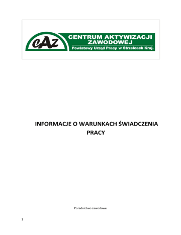 INFORMACJE O WARUNKACH ŚWIADCZENIA PRACY Poradnictwo zawodowe 1 WARUNKI ŚWIADCZENIA PRACY UMOWA NA CZAS OKREŚLONY Jest to umowa terminowa , zawarta na czas określony. Od 22 lutego 2016 roku, pracodawca może zawrzeć , 4 umowy z pracownikiem. Ważne jednak, by ich łączny czas nie był dłuższy niż 33 miesiące. Licząc łącznie z ewentualną umową na okres próbny na 3 miesiące, pierwszą umowę na czas nieokreślony będzie można podpisać najpóźniej po 36 miesiącach pracy w danym miejscu, czyli po 3 latach. UMOWA O PRACĘ NA CZAS NIEOKREŚLONY Umowa ta zawiera wszystkie te elementy, które obligatoryjne zapisane są w każdej umowie pracowniczej: data podpisania umowy zdefiniowanie rodzaju strony podpisujące umowę szczegółowe warunki pracy- oraz płacy, w których zostaje opisane jakie obowiązki związane są z danym stanowiskiem, jakie jest wynagrodzenie i jego elementy składowe Strony mają swobodę kształtowania treści umowy pod warunkiem iż nie naruszają przepisów kodeksu pracy, innych ustaw, ratyfikowanych umów międzynarodowych i prawa UE oraz Konstytucji. Szczególne cechy umowy zawieranej na czas nieokreślony Sama umowa na czas nieokreślony jest szczególna ze względu na tryb jej rozwiązywania oraz wiążące pracodawcę terminy. W kodeksie pracy przewidziane zostały trzy sposoby rozwiązania umowy o pracę: za porozumieniem stron za wypowiedzeniem jednej ze stron z zachowaniem okresu wypowiedzenia za wypowiedzeniem bez zachowania okresu wypowiedzenia; Umowa na czas nieokreślony może być przez pracodawcę rozwiązana bez zachowania okresu wypowiedzenia wyłącznie z określonych powodów: popełnienie przestępstwa przez pracownika i działanie na szkodę pracodawcy, łamanie zakazu o działalności konkurencyjnej oraz w przypadku wykazania trwałego braku kwalifikacji i umiejętności do pracy na określonym stanowisku. Wypowiedzenia umowy na czas określony jak i umowy na czas nieokreślony jest takie samo. Nowelizacja, która obowiązuje od lutego 2016r. przewiduje, że za wypowiedzeniem będzie można rozwiązać każdą umowę o pracę na czas określony, niezależnie na jaki czas została zawarta i czy odpowiedni zapis pojawił się w umowie. 2 Obecnie okres wypowiedzenia jest taki sam, jak w przypadku umów o pracę na czas nieokreślony, tj. uzależniony od okresu zatrudnienia pracownika u danego pracodawcy. Czyli okresy wypowiedzenia wynoszą: 2 tygodnie, jeżeli pracownik był zatrudniony krócej niż 6 miesięcy, 1 miesiąc, jeżeli pracownik był zatrudniony co najmniej 6 miesięcy, 3 miesiące, jeżeli pracownik był zatrudniony co najmniej 3 lata. Wprowadzenie okresów wypowiedzenia uzależnionych od stażu pracy u danego pracodawcy wydłuży procedurę wypowiadania umów. A to z kolei da pracownikom większą stabilizację zatrudnienia, której nie mieli przy umowie na czas określony zawartej nawet na wiele lat. • UMOWA NA OKRES PRÓBNY Jest to umowa terminowa , zawarta na określony czas. Pracodawca może podpisać z tym samym pracownikiem jedną umowę na okres próbny. Okres ten trwa maksymalnie 3 miesiące. W okresie próbnym pracodawca może sprawdzić przydatność pracownika do pracy. Pracownik podejmując prace na okres próbny ma możliwość, zapoznać się z warunkami pracy, sprawdzić się na danym stanowisku przed trwalszym związaniem się z pracodawcą. • NA CZAS OKREŚLONY TZW. NA ZASTĘPSTWO Jest to szczególna forma umowy na czas określony . Zawierana jest w wyniku nieobecności pracownika, zapewniając jego zastępstwo w czasie jego usprawiedliwionej nieobecności. Umowa ta różni się od typowej umowy na czas określonym brakiem ochrony kobiet w ciąży zgodnie z art.177 K.P. ZATRUDNIENIE W NIEPEŁNYM WYMIARZE CZASY PRACY Kodeks pracy dopuszcza możliwość zawierania umów w niepełnym wymiarze czasu pracy. Przyjmuje się, że praca niepełno etatowa jest wykonywana w wymiarze np. 25%- ¼ etatu, 50% - ½ etatu, 75%¾ etatu, obowiązującego pełnego czasu pracy. Pracodawca zobowiązany jest dla takiego pracownika w jego harmonogramie pracy dokładnie określić w jakich dniach i po ile godzin ma świadczyć pracę. Praca w niepełnym wymiarze czasu pracy, nie może być powodem jakiejkolwiek dyskryminacji oraz nierównego traktowania. • 3 PRACA TYMCZASOWA TZW. LEASING PRACOWNICZY Cechą charakterystyczną pracy tymczasowej jest jej trójstronny charakter. Jest to stosunek pracy zawarty pomiędzy trzema podmiotami : agencją pracy tymczasowej, pracodawcą , a użytkownikiem i pracownikiem tymczasowym. Agencja zawiera umowę o świadczeniu pracy z pracodawcą-użytkownikiem za określoną prowizję. Agencja zleca wykonanie określonych czynności pracownikowi tymczasowemu, dla którego jest pracodawcą według przepisów Kodeksu Pracy – przy umowie o pracę lub Kodeksu Cywilnego – przy umowie zleceniu. Pracownik świadczy pracę na rzecz i pod kierownictwem pracodawcy-użytkownika , jednak nie wiąże go z nim żadna umowa. Wszystkie obowiązki i koszty pracownicze , związane z umową o pracę, spoczywają na agencji , w której zatrudniony jest pracownik tymczasowy. U jednego pracodawcy-użytkownika pracownik tymczasowy może świadczyć pracę przez 18 miesięcy w ciągu kolejnych 36 miesięcy. Wyjątkiem jest sytuacja, kiedy pracownik tymczasowy jest zatrudniony w zastępstwie pracownika etatowego. W takim przypadku maksymalny okres zatrudnienia może wynosić 36 miesięcy. Obowiązki ciążące na pracodawcy-użytkowniku wobec pracownika tymczasowego to zapewnienie pracownikowi odzieży i obuwia roboczego oraz środków higieny osobistej , napojów i posiłków zgodnie z przepisami BHP; -Zapewnienie bezpiecznych i higienicznych warunków pracy; -Przeszkolenie pracownika w zakresie BHP; -Poinformowanie o ryzyku zawodowym. Praca tymczasowa coraz częściej jest wykorzystywana przez podmioty gospodarcze w sytuacji czasowego zwiększenia zapotrzebowania na pracowników, przy pracach sezonowych lu
