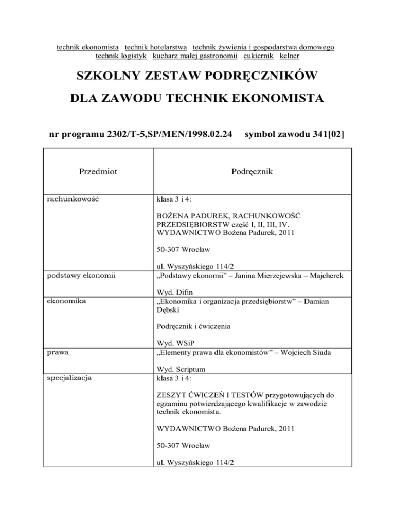 szkolny zestaw podręczników dla zawodu technik ekonomista