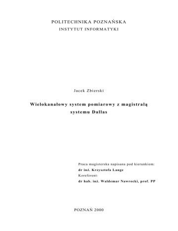 pomiarowego na bazie magistrali 1- Wire, dlatego teŜ w części teoretycznej główny nacisk