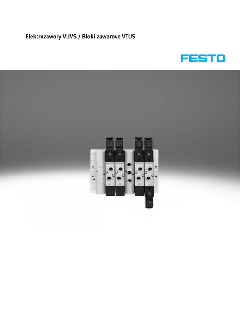 Elektrozawory VUVS / Bloki zaworove VTUS -V- Nowość Wielkość 30, VUVS-LK Elektrozawory VUVS / Bloki zaworove VTUS Główne cechy Nowatorskie rozwiązanie Niezawodne i wytrzymałe zawory o dużej żywotności Konstrukcja: – System tłoczkowy z wkładkami z uszczelnieniami (VUVS-L) – System z uszczelnieniami na tłoczku (VUVS-LK) Natężenie przepływu do 2300l/min dla VUVS-L Natężenie przepływu do 1000 l/min dla VUVS-LK Szeroki asortyment funkcji zaworów Uniwersalność Napięcie robocze może być łatwo zamienione przez zmianę cewki (VUVS-L) Zawory in-line można stosować jako zawory indywidualne lub zawory na płytę Różne strefy ciśnieniowe Szeroka gama opcji montażowych Niezawodność Ergonomiczność, niezawodne działanie Niezawodny serwis dzięki możliwości prostej i szybkiej wymiany zaworów Wybór zaworów na płytę Konfigurator Odpowiedni blok zaworowy VTUS można szybko i łatwo skonfigurować przy pomocy katalogu online. Katalog oferuje wygodny konfigurator dzięki któremu jest znacznie łatwiej wybrać odpowiedni produkt. 2 Łatwa instalacja Wstępnie zmontowane bloki zaworowe Poszczególne zawory zmontowane i przygotowane do instalacji Płyty przyłączeniowe do montażu z jednej lub z dwóch stron Bezpieczny montaż na ścianę lub na szynie H Modele CAD 2D/3D Bloki zaworowe są w pełni montowane zgodnie z wybraną konfiguracją i indywidualnie sprawdzane. Zapewnia to redukcję do minimum czasu montażu i instalacji. è internet: www.festo.com/catalogue/... System zamawiania bloków zaworowych VTUS è Internet: vtus Dane CAD do konfiguracji bloków zaworowych można pobrać online za pomocą konfiguratora. Zastrzega się możliwość zmian – 2016/03 -V- Nowość Wielkość 30, VUVS-LK Elektrozawory VUVS / Bloki zaworove VTUS Główne cechy Elektrozawory VUVS Zawór in-line VUVS jako zawór indywidualny Blok zaworowy VTUS Zawór in-line VUVS-LK jako zawór indywidualny Opcje wyposażenia VUVS-L VUVS-LK Zawory 3/2-, 5/2- i 5/3-drożne z lub bez cewki elektrozaworu Wielkość 20 (21 mm) Wielkość 25 (26,5 mm) Wielkość 30 (31 mm) Zawory 3/2- i 5/2-drożne z cewką Wielkość 20 (21 mm) Wielkość 25 (26,5 mm) Napięcie robocze zaworów VUVS-L może być zmieniane poprzez zmianę cewki elektrozaworu na rurce twornika. Funkcje zaworowe VUVS-L Zawory 3/2-drożne, pozycja normalna otwarty, z jedną cewką Wew./zew. pneumatyczne zasilanie pilotów Kasowanie pneumatyczne/sprężyną mechaniczną Kierunek przepływu może być odwrócony w przypadku zewnętrznego zasilania pilotów 2016/03 – Zastrzega się możliwość zmian Zawory 3/2-drożne, pozycja normalna zamknięty, z jedną cewką Wew./zew. pneumatyczne zasilanie pilotów Kasowanie pneumatyczne/sprężyną mechaniczną Kierunek przepływu może być odwrócony w przypadku zewnętrznego zasilania pilotów Zawór 5/2-drożny, z jedną cewką: Wew./zew. pneumatyczne zasilanie pilotów Kasowanie pneumatyczne/sprężyną mechaniczną Kierunek przepływu może być odwrócony w przypadku zewnętrznego zasilania pilotów Zawór 5/2-drożny, z dwoma cewkami: Wew./zew. pneumatyczne zasilanie pilotów Kierunek przepływu może być odwrócony w przypadku zewnętrznego zasilania pilotów è internet: www.festo.com/catalogue/... Zawór 5/3-drożny, w położeniu środkowym odpowietrzony, zasilony albo zamknięty: Wew./zew. pneumatyczne zasilanie pilotów Kasowanie sprężyną mechaniczną Kierunek przepływu może być odwrócony w przypadku zewnętrznego zasilania pilotów 3 -V- Nowość Wielkość 30, VUVS-LK Elektrozawory VUVS / Bloki zaworove VTUS Główne cechy Opcje wyposażenia Funkcje zaworowe VUVS-LK Zawory 3/2-drożne, pozycja normalna otwarty, z jedną cewką Wew. zasilanie pilotów Kasowanie sprężyną pneumatyczną Przepływ jednokierunkowy Zawór 5/2-drożny, z jedną cewką: Wew. zasilanie pilotów Kasowanie sprężyną pneumatyczną Przepływ jednokierunkowy Zawór 5/2-drożny, z dwoma cewkami: Wew. zasilanie pilotów Przepływ jednokierunkowy Pozycje zaworowe 2 … 10 można konfigurować po 1 kroku, pozycje 10 … 16 po 2 krokach Blok przyłączeniowy z maksymal nie 10 pozycjami zaworowymi Moduł rozszerzający z 2 pozycja mi zaworowymi Blok zasilający z maksymalnie 10 pozycjami zaworowymi Główne cechy W wersji standardowej można skonfigurować maksymalnie 16 pozycji zaworowych (tylko dla wa riantu VUVS-L) W wersji kompaktowej można skonfigurować maksymalnie 12 pozycji zaworowych (dla wariantu VUVS-LK maksymalnie 10 pozycji zaworowych) Konstrukcja Wymiana zaworu Każdy zawór jest przymocowany do metalowej płyty przyłączeniowej za pomocą dwóch śrub. Na zaworze jest zamontowane odpowiednie uszczelnienie. 4 Tworzenie stref ciśnienia (maksy malnie 9 stref w przypadku bloku z 16 pozycjami zaworowymi) Rozszerzenie Oznacza to, że zawory mogą być łatwo wymienione. è internet: www.festo.com/catalogue/... Zaślepki w niewykorzystanych pozy cjach zaworów mogą być zastąpione przez zawory w późniejszym terminie. Wymiary, mocowania i istnieją ce instalacje pneumatyczne pozostają niezmienione. Moduły rozszerzające z dwoma pozycjami zaworów są dostępne dla standardowego bloku przyłączeniowego. Bloki przyłączeniowe mogą być rozszer zane maksymalnie o trzy moduły rozszerzające. Zastrzega się możliwość zmian – 2016/03 -V- Nowość Wielkość 30, VUVS-LK Elektrozawory VUVS / Bloki zaworove VTUS Główne cechy Standardowy blok przyłączeniowy (nie dla zaworów VUVS-LK) Dla zaworów 3/2 drożnych Podłączenie Wielkość 20: G3/8 Wielkość 25: G1/2 Wielkość 30: G3/4 Dla zaworów z zew. zasilaniem pilotów Maksymalnie 10 pozycji zaworowych Dla zaworów 5/2- i 5/3-drożnych Podłączenie Wielkość 20: G3/8 Wielkość 25: G1/2 Wielkość 30: G3/4 Dla zaworów z zew. zasilaniem pilotów Maksymalnie 10 pozycji zaworowych Rozszerzenie standardowego bloku przyłączeniowego (nie dla zaworów VUVS-LK) Dla zaworów 3/2 drożnych Dla zaworów 5/2- i 5/3-drożnych Podłą