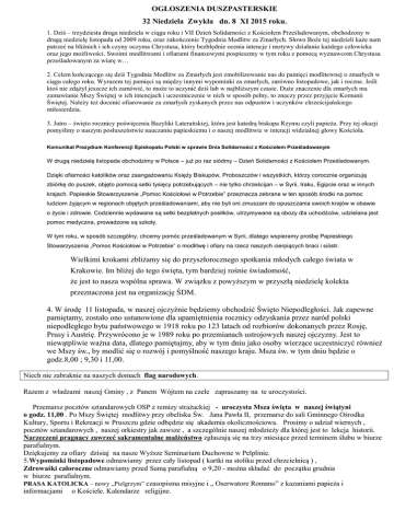 OGŁOSZENIA DUSZPASTERSKIE 32 Niedziela