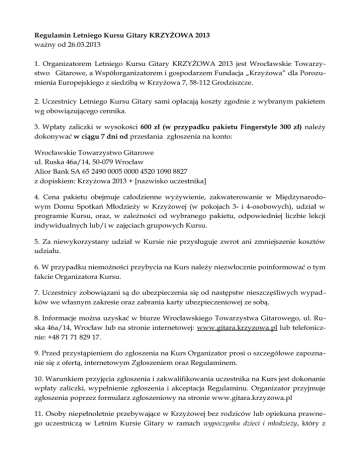 Regulamin Letniego Kursu Gitary KRZYŻOWA 2013 ważny od 26.03