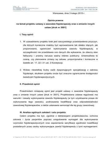 Opinia prawna - Stowarzyszenie Fizjoterapia Polska