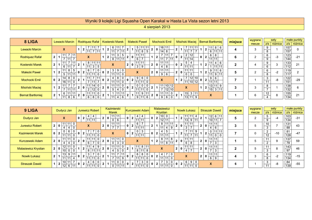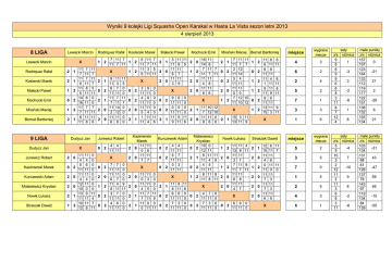 9. Wyniki 9 kolejki Ligi Squasha Open Hasta La Vista