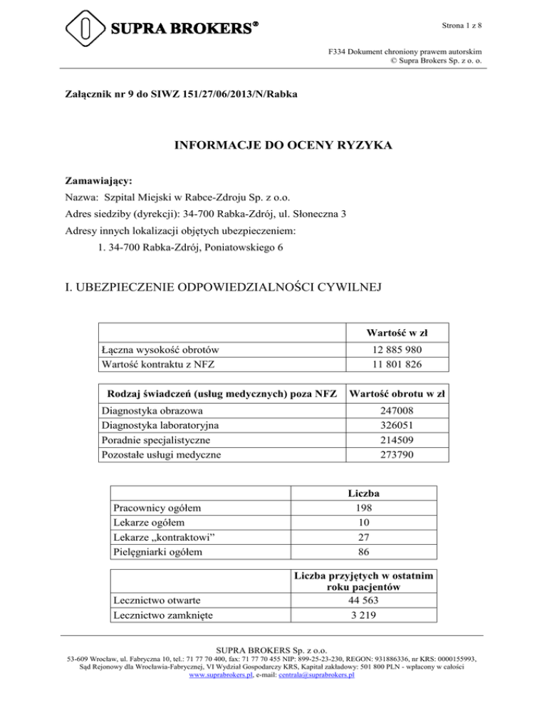 Informacje do oceny ryzyka - Szpital Miejski w Rabce