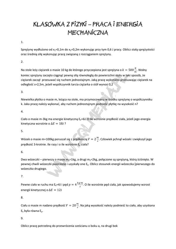 Klasówka z Fizyki – Praca i energia mechaniczna