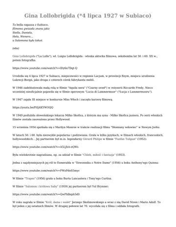 Gina Lollobrigida (*4 lipca 1927 w Subiaco)