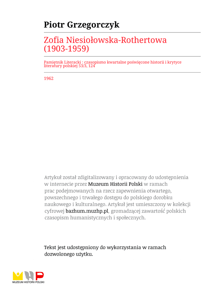 Piotr Grzegorczyk Zofia Niesiołowska-Rothertowa (1903