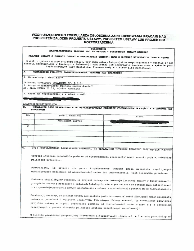 AKX 203446. do reprezentowania Deloitte Doradztwo Podatkowe sp. z o.o. w konsultacjach.