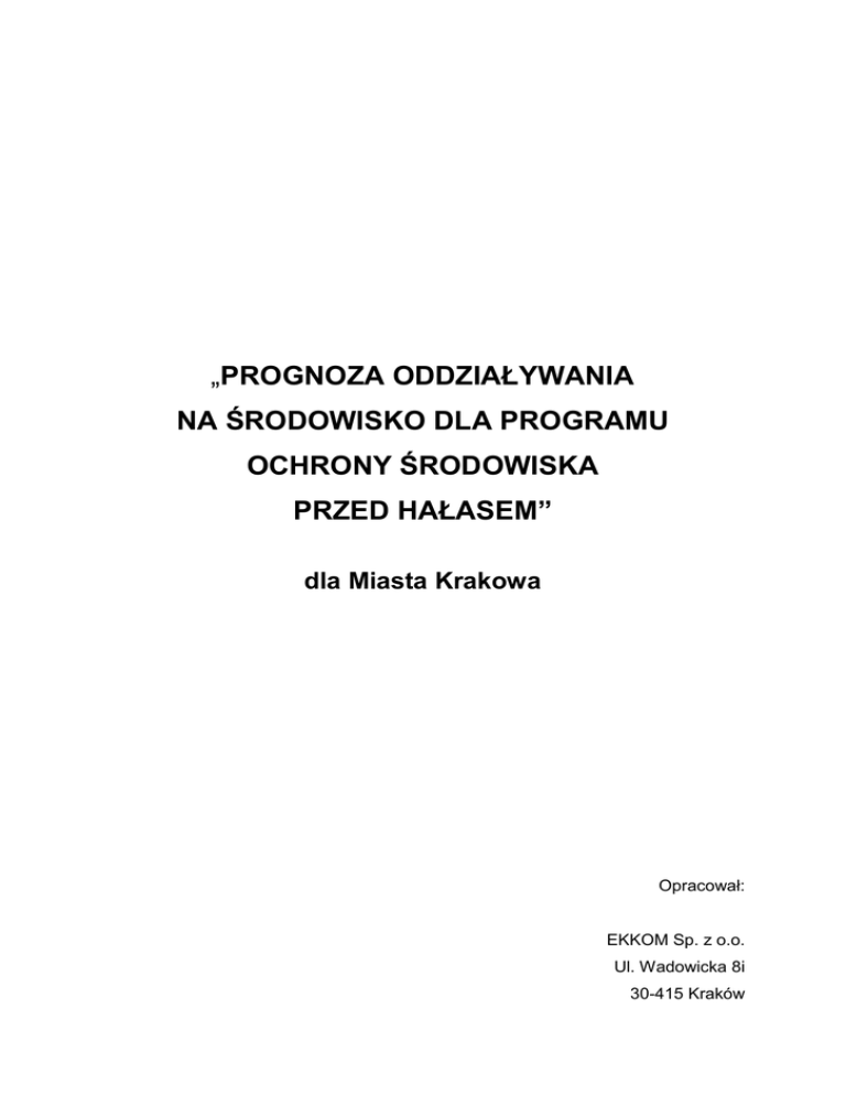 „PROGNOZA ODDZIAŁYWANIA NA ŚRODOWISKO DLA PROGRAMU OCHRONY ŚRODOWISKA PRZED HAŁASEM” dla Miasta Krakowa Opracował: EKKOM Sp. z o.o. Ul. Wadowicka 8i 30-415 Kraków Prognoza oddziaływania na środowisko dla Programu ochrony środowiska przed hałasem dla miasta Krakowa Zespół autorski: dr inż. Janusz Bohatkiewicz mgr inż. Sebastian Biernacki mgr inż. Maciej Hałucha mgr inż. Robert Wańczyk mgr Paulina Adamaszek 2 Prognoza oddziaływania na środowisko dla Programu ochrony środowiska przed hałasem dla miasta Krakowa SPIS TREŚCI: 1. ZAWARTOŚĆ, GŁÓWNE CELE PROJEKTOWANEGO DOKUMENTU ORAZ JEGO POWIĄZANIA Z INNYMI DOKUMENTAMI .................................. 4 1.1. Cel i zakres Programu ................................................................................ 4 1.2. Opis obszaru objętego zakresem Programu .............................................. 5 1.3. Powiązania z innymi dokumentami............................................................. 7 2. INFORMACJE O METODACH ZASTOSOWANYCH PRZY SPORZĄDZANIU PROGNOZY ........................................................................ 15 3. ZAŁOŻENIA PROGRAMU OCHRONY ŚRODOWISKA PRZED HAŁASEM DLA MIASTA KRAKOWA ............................................................. 15 3.1. 3.2. 3.3. 3.4. 4. Strategia krótkookresowa ......................................................................... 16 Polityka długookresowa ............................................................................ 18 Edukacja ekologiczna ............................................................................... 44 Termin realizacji programu, w tym terminy realizacji poszczególnych zadań 45 ANALIZA ISTNIEJĄCEGO STANU ŚRODOWISKA ORAZ OCENA WPŁYWU REALIZACJI PROGRAMU NA TERENIE MIASTA KRAKOWA ....................................................................................................... 46 4.1. Stan klimatu akustycznego w Krakowie .................................................... 46 4.2. Proponowane działania naprawcze .......................................................... 55 4.3. Istniejące obszary podlegające ochronie na podstawie ustawy z dnia 16 kwietnia 2004 r. o ochronie przyrody ........................................ 62 4.4. Ocena oddziaływania na środowisko działań proponowanych w ramach Programu ..................................................................................... 65 4.5. Oddziaływania na obszary podlegające ochronie na podstawie ustawy z dnia 16 kwietnia 2004 r. o ochronie przyrody ............................ 82 5. POTENCJALNE ZMIANY STANU ŚRODOWISKA W PRZYPADKU BRAKU REALIZACJI PROGRAMU ................................................................. 84 6. INFORMACJE O MOŻLIWYM TRANSGRANICZNYM ODDZIAŁYWANIU NA ŚRODOWISKO ........................................................... 85 7. ROZWIĄZANIA MAJĄCE NA CELU ZAPOBIEGANIE, OGRANICZANIE LUB KOMPENSACJĘ PRZYRODNICZĄ NEGATYWNYCH ODDZIAŁYWAŃ NA ŚRODOWISKO ................................. 85 8. ANALIZA MOŻLIWYCH ROZWIĄZAŃ ALTERNATYWNYCH ........................ 86 9. PROPOZYCJE DOTYCZĄCE PRZEWIDYWANYCH METOD ANALIZY SKUTKÓW REALIZACJI POSTANOWIEŃ PROJEKTOWANEGO DOKUMENTU ORAZ CZĘSTOTLIWOŚCI JEJ PRZEPROWADZANIA ......... 87 10. STRESZCZENIE W JĘZYKU NIESPECJALISTYCZNYM ............................... 87 11. LITERATURA ................................................................................................... 91 3 Prognoza oddziaływania na środowisko dla Programu ochrony środowiska przed hałasem dla miasta Krakowa 1. ZAWARTOŚĆ, GŁÓWNE CELE PROJEKTOWANEGO DOKUMENTU ORAZ JEGO POWIĄZANIA Z INNYMI DOKUMENTAMI Obowiązek przeprowadzenia strategicznej oceny oddziaływania na środowisko dla „Programu ochrony środowiska przed hałasem dla miasta Krakowa” wraz z „Prognozą oddziaływania na środowisko”, wynika z art. 46 i 50 ustawy z dnia 3 października 2008 r. o udostępnianiu informacji o środowisku i jego ochronie, udziale społeczeństwa w ochronie środowiska oraz o ocenach oddziaływania na środowisko [2]. W ramach tego postępowania sporządza się, zgodnie z art. 51 ust. 1 wymienionej ustawy, prognozę oddziaływania na środowisko. Zakres prognozy został uzgodniony z Regionalną Dyrekcją Ochrony Środowiska w Krakowie za pismem z dnia 14 maja 2013 r. znak: OO.411.1.3.2013.JJ oraz z Państwowym Wojewódzkim Inspektoratem Sanitarnym w Krakowie za pismem z dnia 5 czerwca 2013 r. znak: NS.9022.4.328.2013. Prognoza do projektu Programu nie jest dokumentem, który w sposób ilościowy wskazuje presje i oddziaływania wynikające z realizacji Programu, a pokazuje na przykładzie konkretnych zapisów, ogólny kierunek, w którym zmierzać będą przyszłe trendy środowiskowe wynikające z realizacji dokumentu. Jest to wynikiem stosunkowo ogólnych danych w odniesieniu do detali technicznych, które mogą mieć istotne znaczenie dla wielkości wywieranych presji środowiskowych. Zatem jej głównym celem jest określenie kierunków przemian jakościowych oraz charakterystyka cech przyszłych oddziaływań. Należy również zaznaczyć, że ilekroć w niniejszej Prognozie jest mowa o oddziaływaniu na środowisko należy przez to rozumieć również oddziaływanie na zdrowie, warunki i jakość życia mieszkańców, w tym ochronę ich zdrowia. 1.1. Cel i zakres Programu Zakres ocenianego Programu obejmuje analizę obszarów położnych na terenie miasta Krakowa, na których przekroczone zostały dopuszczalne poziomy hałasu. Celem niezbędnych Programu zadań jest dla określenie ograniczenia priorytetów działań oddziaływania oraz hałasu. wskazanie W ramach przedmiotowego Programu przedstawiono zestaw zaleceń o charakterze rozwiązań 4 Prognoza oddziaływania na środowisko dla Programu ochrony środowiska przed hałasem dla miasta Krakowa technicznych, jak i wskazano kierunki innych działań, których realizacja pozwoli na osiągnięcie wyznaczonego celu w naj