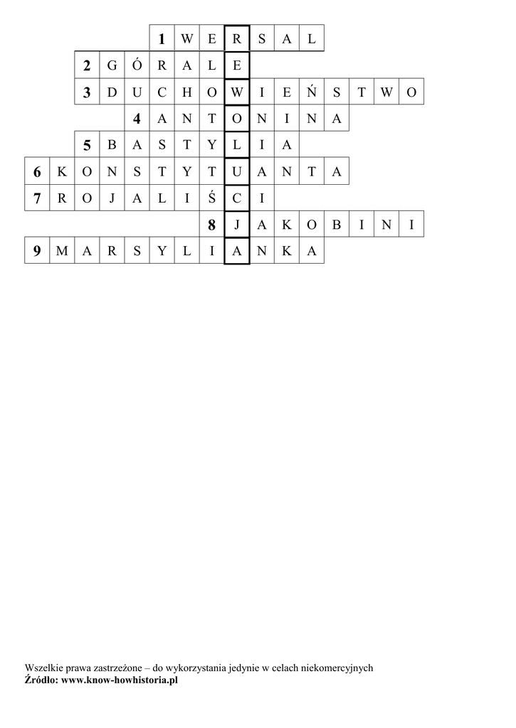 1 W E R E S A L 2 G Ó R A L 3 D U C H O W I E Ń S 4 A N T O N I N A 5 B A S T Y L I A N T A B 6 K O N S T Y T U A 7 R O J A L I Ś C I 8 J A K O I A N K A 9 M A R S Y L T W O I N Wszelkie prawa zastrzeżone – do wykorzystania jedynie w celach niekomercyjnych Źródło: www.know-howhistoria.pl I