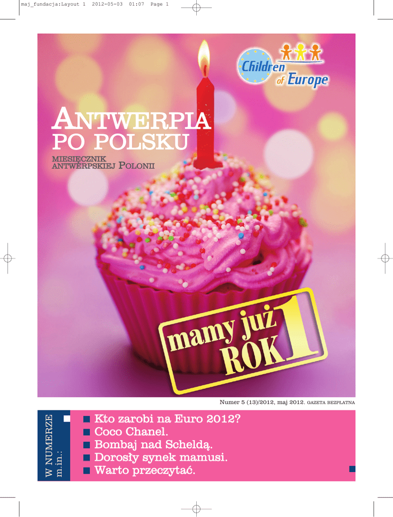 maj_fundacja:Layout 1 2012-05-03 01:07 Page 1 ANTWERPIA PO POLSKU MIESIĘCZNIK ANTWERPSKIEJ POLONII W NUMERZE m.in.: Numer 5 (13)/2012, maj 2012. n n n n n Kto zarobi na Euro 2012? Coco Chanel. Bombaj nad Scheldą. Dorosły synek mamusi. Warto przeczytać. GAZETA BEZPŁATNA maj_fundacja:Layout 1 2 2012-05-03 01:07 Page 2 Antwerpia po polsku maj 2012 o d redakcji To już rok od kiedy jesteśmy z Wami, drodzy Czytelnicy. Oglądając ostatnio pierwszy numer „Antwerpii po polsku” spojrzeliśmy na siebie z uśmiechem. Udało się!!! Rok temu byliśmy pełni obaw i niepokoju, czy Czytelnicy nas zaakceptują, czy pomysł gazety, a zwłaszcza jej treść spodobają się i zostaną pozytywnie przyjęte. Dzisiaj już wiemy, że nasza gazeta ma swoje stałe miejsce na rynku mediów polonijnych w Belgii. Czytelnicy pytają o każdy kolejny numer, a my staramy się robić wszystko, aby sprostać ich oczekiwaniom. Zaczynaliśmy skromnie – kilku zapaleńców, którzy zdecydowali, że w Antwerpii musi być polska gazeta. I dalej jesteśmy razem, chociaż pewne cykle się skończyły, a tematy wyczerpały. Dołączają do nas kolejne osoby, które chcą razem z nami tworzyć kolejny numer. Niektórzy z nas bardziej skoncentrowani na pracy zawodowej mają może mniej czasu dla gazety, ale zawsze służą swoją radą i pomocą. Mamy nadzieję, że to co proponowaliśmy do tej pory i tematy jakie zamierzamy poruszać w przyszłości spotkają się z aprobatą i zainteresowaniem naszych Czytelników. Dziękujemy całej redakcji – tym, którzy piszą artykuły jak i osobom dbającym o szatę graficzną. Z tej okazji życzmy sobie, abyśmy przez kolejny rok dalej razem pracowali nad naszą wspólną gazetą. A przede wszystkim, aby pracowało się nam tak sympatycznie jak do tej pory. Dziękujemy naszym Czytelnikom za tak pozytywne przyjęcie „Antwerpii po polsku”, za każdy telefon i mail skierowany do redakcji. Mamy nadzieje, że będą Państwo informować nas o tym co ciekawego i interesującego dzieje się w Antwerpii. Czekamy również na sygnały dotyczące Polonii i spraw związanych z życiem na emigracji. Dziękujemy Agorze Holding, która jest naszym „dobrym duchem” od początku. Jesteśmy wdzięczni za pomoc, zrozumienie, fachowe rady i wszystkie miłe słowa pod naszym adresem. To właśnie dzięki „Agorze” wyszedł pierwszy numer „Antwerpii po polsku”. To dla nas bardzo ważne, że ktoś w Polsce docenia wysiłek grupy zapaleńców w Antwerpii. Prawie rok po ukazaniu się pierwszego numeru „Antwerpii po polsku”, wypuściliśmy na rynek drugą gazetę – Diensten / Usługi / Service, w skrócie DUS. Jest to wyjątkowy miesięcznik, który tak naprawdę powstał na prośbę naszych Czytelników. Każdy polski przedsiębiorca, czy osoba prywatna może zamieścić w nim ogłoszenie, które ukaże się w trzech językach (po niderlandzku, po angielsku i po polsku). Wiadomo, że niektóre polskie usługi i towary nie mają sobie równych. Ale Belgowie nie zawsze wiedzą gdzie ich szukać. Strony internetowe zawierające tego typu ogłoszenia są tylko w naszym ojczystym języku i dla przeciętnego Belga – niezrozumiale. DUS ukazuje się w wersji gazetowej i elektronicznej i poprzez wyjątkową sieć dystrybucji dociera do mieszkańców Flandrii. Zapraszamy wszystkich Polaków do korzystania z tych usług. Ceny za umieszczenie reklam są naprawdę niewielkie, a głównym naszym celem jest umożliwienie nawiązania kontaktów biznesowych polskim firmom na tutejszym rynku. Będziemy rozszerzać dystrybucję na inne kraje Unii Europejskiej i mamy nadzieje, że pomożemy naszym rodakom. Jeszcze raz ogromne podziękowania dla wszystkich i do zobaczenia w kolejnym numerze. Redakcja SKŁAD REDAKCJI: Magdalena Wawryszuk, Izabela Krzysiak, Rafał Kitaszewski, Agata Kocińska KONTAKT: [email protected], tel.: 0489/823803 WYDAWCA: Fundacja „Children of Europe”, www.antwerpiapopolsku.be Redakcja nie ponosi odpowiedzialności za treść reklam i ogłoszeń Jesteśmy na Fecebooku, szukaj: childrenofeurope2011@hotmail .com lub bezpośrednio: http://facebook.com/Children.of.Europe maj_fundacja:Layout 1 2012-05-03 01:08 Page 3 Antwerpia po polsku maj 2012 NAJLEPSZA POLSKA IMPREZA Z MUZYKĄ NA ŻYWO Zapraszamy na jedyną polską majówkę w Antwerpii data: 27.05.2012 miejsce: Park Spoor Noord od 12:00 do 21:00 W programie m.in.: polskie przeboje w wykonaniu zespołu działającego przy fundacji „Children of Europe” niezawodny „Tom & Jerr y” z Brukseli gr y, zabawy, konkursy pyszne polskie jedzenie i niespodzianki dla małych i dużych Gwarantowana dobra zabawa dla całej rodziny!!! Wstęp wolny Więcej informacji pod nr tel.: 0489823803 oraz e-mail: [email protected] www.childrenofeurope.be ORGANIZATOR: PATRONAT MEDIALNY: SPONSORZY 3 maj_fundacja:Layout 1 4 2012-05-03 01:08 Page 4 Antwerpia po polsku maj 2012 Dzielnice Antwerpii Little Bombay nad Scheldą w Antwerpii mieszka kilkanaście tysięcy Hindusów. Pierwsi indyjscy imigranci przybyli do Antwerpii pod koniec lat czterdziestych XX wieku. a całym świecie przedsiębiorcy i pracownicy z Indii podbijają rynki. Powoli, nie spiesząc się, bez rozgłosu. Indie „eksportują mózgi i ręce swoich obywateli” i bardzo dobrze na tym wychodzą. Nie bez powodu Hindusi nazywani bywają „Żydami XXI wieku”. Mają doskonałe wyczucie biznesowe, a jedną z ich głównych zalet jest cierpliwość. Potrafią czekać, a to wielka sztuka. Hindusi mieszkają również w Antwerpii i przejęli 75 procent kontroli nad tutejszym rynkiem diamentów. A to oznacza, że „przeciętny Hindus parający się nad Scheldą handlem diamentami jest wyjątkowo bogaty”. Pierwsi indyjscy imigranci przybyli do Antwerpii pod koniec lat czterdziestych XX wieku. Na większą skalę Hindusi zaczęli osiedlać się w Antwerpii w latach 70-tych ubiegłego wieku. Skusiło ich to miasto olbrzymi obrotami, a także liberalnym belgijskim prawem imigracyjnym