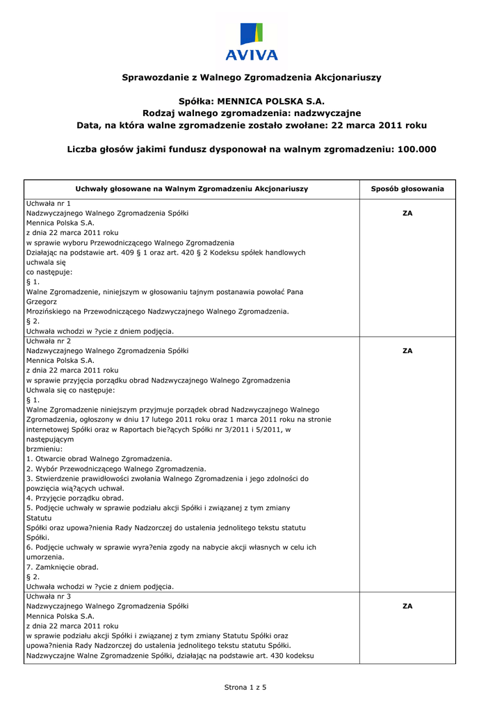 Data, na która walne zgromadzenie zostało zwołane: 22 marca 2011 roku