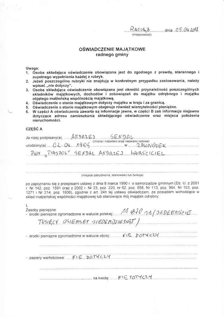 oŚwlADczENlE MAJĄTKowE