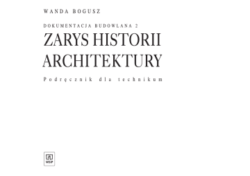 Spis treści Wstęp . . . . . . . . . . . . . . . . . . . . . . . . . . . . . . . . . . . . . . . . 5 3. Architektura średniowiecza . . . . . . . . . . . . . . . . . . . . . . . . 55 1. Rozwój kultur starożytnych kręgu śródziemnomorskiego . . . 7 3.1. Warunki rozwoju architektury w średniowieczu . . . . . . . . . 55 1.1. Architektura starożytnego Egiptu (ok. XXX–I w. 1.1.1. Warunki geograficzne, ustrój, dzieje . . . . 1.1.2. Materiały budowlane, konstrukcje i forma 1.1.3. Przykłady budowli . . . . . . . . . . . . . . . . p.n.e.) ..... ..... ..... . . . . . . . . 1.2. Architektura Mezopotamii (ok. XXX–IV w. p.n.e.) . . . . . 1.2.1. Warunki rozwoju architektury i jej okresy historyczne 1.2.2. Materiały budowlane, konstrukcje i forma . . . . . . . 1.2.3. Przykłady budowli . . . . . . . . . . . . . . . . . . . . . . . 1.3. Architektura Grecji w okresie przedhistorycznym i starożytnym . . . . . . . . . . . . . . . . . . . . . . . . . . . 1.3.1. Architektura Grecji przedhistorycznej (III i II tysiąclecie p.n.e.) . . . . . . . . . . . . . . . 1.3.2. Warunki rozwoju architektury starożytnej Grecji i jej okresy dziejowe (XII–I w. p.n.e.) . . . . . . . 1.3.3. Materiały budowlane, konstrukcje i forma . . . . 1.3.4. Przykłady architektury i urbanistyki . . . . . . . . . 7 . 7 . 8 . 10 3.2. Styl romański (X–XIII w.) . . . . . . . . . . . . . . 3.2.1. Wiadomości wstępne . . . . . . . . . . . . . . 3.2.2. Materiały budowlane, konstrukcje i forma 3.2.3. Przykłady obiektów romańskich . . . . . . . . . . . . . . . . . . . . . . . . . . . . . . . . . . . 55 55 56 61 . . . . 3.3. Styl gotycki (XII–XV w.) . . . . . . . . . . . . . . . . . 3.3.1. Wiadomości wstępne . . . . . . . . . . . . . . . . 3.3.2. Materiały budowlane, konstrukcje i forma . . 3.3.3. Przykłady architektury gotyckiej w Europie . 3.3.4. Architektura gotycka w Polsce (XIII–XV w.) . . . . . . . . . . . . . . . . . . . . . . . . . . . . . . 68 68 69 73 79 14 14 15 16 . . . . 18 . . . . 18 . . . . 21 . . . . 22 . . . . 26 1.4. Architektura starożytnego Rzymu (VII w. p.n.e.–V w. n.e.) 1.4.1. Rodowód kultury rzymskiej i jej rys historyczny . . . 1.4.2. Materiały budowlane, konstrukcje i forma . . . . . . . 1.4.3. Zabudowa miast rzymskich . . . . . . . . . . . . . . . . . 1.4.4. Przykłady budowli . . . . . . . . . . . . . . . . . . . . . . . 1.4.5. Wpływ kultury rzymskiej na rozwój architektury europejskiej . . . . . . . . . . . . . . . . . . . . . . . . . . . . . . . . 34 34 36 38 39 . 46 . . . . 4. Architektura nowożytna . . . . . . . . . . . . . . . . . . . . . . . . . . 87 4.1. Architektura renesansowa (XV–XVI w.) . . . . . . . . . . . . . 4.1.1. Uwarunkowania i okresy rozwoju sztuki renesansowej 4.1.2. Materiały, konstrukcje, detale architektoniczne i charakterystyczne cechy budowli . . . . . . . . . . . . . 4.1.3. Urbanistyka . . . . . . . . . . . . . . . . . . . . . . . . . . . . 4.1.4. Przykłady dzieł wybitnych twórców renesansowych we Włoszech . . . . . . . . . . . . . . . . . . . . . . . . . . . 4.1.5. Architektura renesansowa we Francji i w Niemczech . 4.1.6. Renesans w Polsce (XVI–XVII w.) . . . . . . . . . . . . . 4.2. Architektura barokowa (koniec XVI w.–XVIII w.) . . . . . . . 4.2.1. Tło historyczne i okresy rozwoju . . . . . . . . . . . . . . 4.2.2. Materiały, konstrukcje, forma oraz zasady kształtowania przestrzeni architektonicznej i urbanistycznej . . . . . . 4.2.3. Przykłady architektury barokowej w Europie . . . . . . 4.2.4. Barok w Polsce (XVII w. i pierwsza połowa XVIII w.) 87 87 88 93 95 105 105 116 116 117 119 125 2. Architektura okresu przejściowego między starożytnością a średniowieczem . . . . . . . . . . . . . . . . . . . . . . . . . . . . . . . 47 4.3. Rokoko (1720–1780 r.) . . . . . . . . . . . . . . . . . . . . . . . . . 132 2.1. Wiadomości wstępne . . . . . . . . . . . . . . . . . . . . . . . . . . 47 5. Architektura od połowy XVIII w. do przełomu XIX i XX w. . 136 2.2. Architektura wczesnego chrześcijaństwa na terenie Cesarstwa Zachodniorzymskiego (II–VI w.) . . . . . . . . . . . . . . . . . . 47 2.2.1. Warunki rozwoju architektury . . . . . . . . . . . . . . . . 47 2.2.2. Charakterystyka i przykłady budownictwa . . . . . . . . 48 2.3. Architektura bizantyjska (V–XV w.) . . . . . . . . . . . . . . . . 50 2.3.1. Warunki rozwoju i charakterystyka architektury i sztuki . 50 2.3.2. Przykłady budowli . . . . . . . . . . . . . . . . . . . . . . . 53 www.wsip.com.pl 5.1. Klasycyzm (1760–1830 r.) . . . . . . . . . . . . . . . . . . . . 5.1.1. Wiadomości ogólne . . . . . . . . . . . . . . . . . . . . 5.1.2. Przykłady architektury klasycystycznej w Europie 5.1.3. Klasycyzm w Polsce . . . . . . . . . . . . . . . . . . . 5.1.4. Współistnienie romantyzmu i klasycyzmu . . . . . . . . . . . . . . . . . . . . 136 136 136 141 146 5.2. Eklektyzm w architekturze (od początku XIX w.) . . . . . . . 147 5.2.1. Wiadomości wstępne . . . . . . . . . . . . . . . . . . . . . . 147 3 5.2.2. Przykłady architektury eklektycznej w Europie . . . . . 148 5.2.3. Eklektyzm w Polsce . . . . . . . . . . . . . . . . . . . . . . 149 5.3. Próby stworzenia stylu narodowego . . . . . . . . . . . . . . . . . 151 5.4. Secesja (koniec XIX i początek XX w.) 5.4.1. Wiadomości ogólne . . . . . . . . . . 5.4.2. Secesja w Europie . . . . . . . . . . 5.4.3. Secesja w Polsce . . . . . . . . . . . 5.4.4. Rola secesji w architekturze . . . . . . . . . . . . . . . . . . . . . . . . . . . . . . . . . . . . . . . . . . . . . . . . . . . . . . . . . . . . . . . . . . . . . 151 151 152 154 156 5.5. Ekspresjonizm, konstruktywizm i funkcjonalizm . . . . . . . . 156 5.6. Materiały budowlane, konstrukcje i prekursorzy nowych technologii na przełomie XIX i XX w. . . . . . . . . . . . . . . 157 6. Architektura współczesna . . . . . . . . . . . . . . . . . . . . . . . . . 162 6.1. Architektura modernizmu . . . . . . . . . . . . . . . . . . 6.1.1. Warunki rozwoju i charaktery