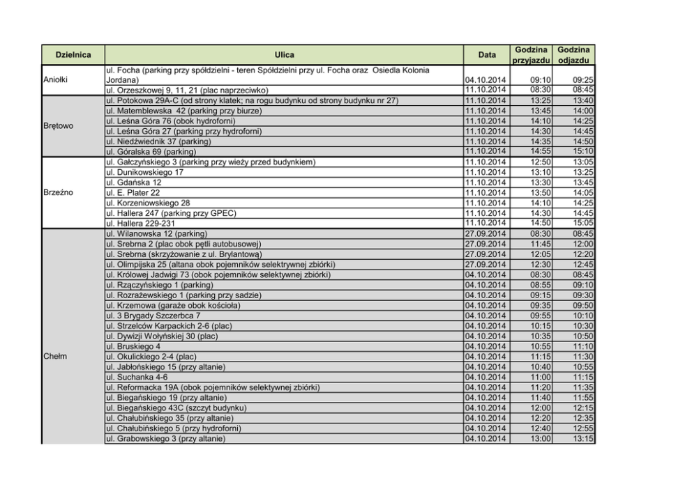 Dzielnica Ulica Data Godzina przyjazdu Godzina odjazdu ul. Focha