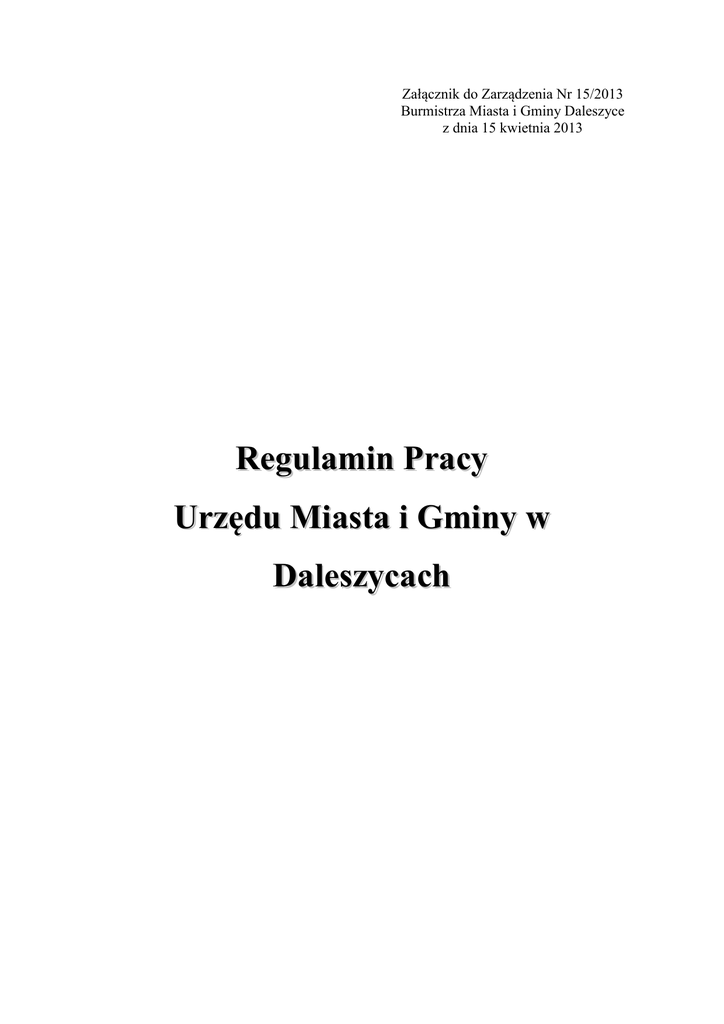 Regulamin Pracy Urz?du Miasta i Gminy w Daleszycach