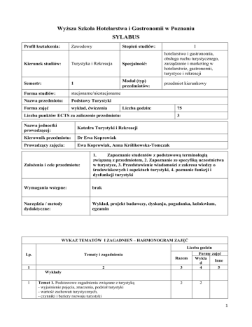 Podstawy Turystyki - Wyższa Szkoła Hotelarstwa i Gastronomii