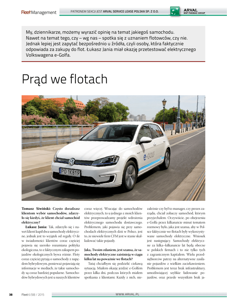 Fleet Management PATRONEM SEKCJI JEST ARVAL SERVICE LEASE POLSKA SP. Z O.O. My, dziennikarze, możemy wyrazić opinię na temat jakiegoś samochodu. Nawet na temat tego, czy – wg nas – spotka się z uznaniem flotowców, czy nie. Jednak lepiej jest zapytać bezpośrednio u źródła, czyli osoby, która faktycznie odpowiada za zakupy do flot. Łukasz Jania miał okazję przetestować elektrycznego Volkswagena e-Golfa. Prąd we flotach Tomasz Siwiński: Często doradzasz klientom wybór samochodów, zdarzyło się kiedyś, że klient chciał samochód elektryczny? Łukasz Jania: Tak, zdarzyło się i nawet klient kupił dwa samochody elektryczne, jednak jest to wyjątek od reguły. O ile w świadomości klientów coraz częściej pojawia się szeroko rozumiana polityka ekologiczna, to z faktycznym zakupem pojazdów ekologicznych bywa różnie. Floty coraz częściej pytają o samochody z napędem hybrydowym, ponieważ pojawiają się informacje w mediach, że takie samochody są coraz bardziej popularne. Samochodów hybrydowych jest u naszych klientów 38 Fleet 6 (58) / 2015 coraz więcej. Wracając do samochodów elektrycznych, to u jednego z moich klientów przeprowadzamy projekt wdrożenia elektrycznego samochodu dostawczego. Problemem, jaki pojawia się przy samochodach elektrycznych dziś w Polsce, jest to, że niewiele firm CFM jest w stanie skalkulować takie pojazdy. Jaka, Twoim zdaniem, jest szansa, że samochody elektryczne zaistnieją w ciągu kilku lat na poważnie we flotach? Tutaj chciałbym się podzielić ciekawą sytuacją. Miałem okazję jeździć e-Golfem przez kilka dni, podczas których miałem spotkania z klientami. Każdy z nich, nie- WWW.ARVAL.PL zależnie czy był to manager, czy prezes zarządu, chciał zobaczy samochód, którym przyjechałem. Oczywiście, po obejrzeniu e-Golfa przez kilkanaście minut tematem rozmowy było, jaka jest szansa, aby w Polsce faktycznie we flotach były wykorzystywane samochody elektryczne. Wniosek jest następujący. Samochody elektryczne za kilka–kilkanaście lat będą obecne w polskich firmach i to nie tylko tych z zagranicznym kapitałem. Wielu przedsiębiorców patrzy na alternatywne zasilanie pojazdów z wielkim zaciekawieniem. Problemem jest teraz brak infrastruktury, umożliwiającej szybkie ładowanie pojazdów, oraz przede wszystkim brak ja- PATRONEM SEKCJI JEST ARVAL SERVICE LEASE POLSKA SP. Z O.O. Łukasz Jania – prezes Zarządu Fleet Partners, członek Zarządu Stowarzyszenia Kierowników Flot Samochodowych. Doktorant na Uniwersytecie Ekonomicznym w Poznaniu, gdzie zajmuje się naukowo sprawami związanymi z zarządzaniem flotami w przedsiębiorstwach. Przez kilka lat zarządzał międzynarodową flotą samochodową w grupie Kofola w takich krajach jak Polska, Czechy, Słowacja. Był odpowiedzialny za rozwój strategii flotowej na tych trzech rynkach. Laureat ludzi dekady 2001–2011 według czasopisma „Fleet”, laureat Fleet Leader 2011. Jest członkiem zarządu Stowarzyszenia Kierowników Flot Samochodowych oraz Česka Associace Fleet Managementu – czeskiego stowarzyszenia zarządzania flotą. Prowadzi szkolenia z zakresu zarządzania flotami samochodów. Prywatnie mąż i ojciec dwójki dzieci. Jego hobby to jazda na rowerze oraz wyścigi samochodowe. kichkolwiek ulg w zakupie i użytkowaniu takich aut. Osobiście również uważam, że za kilka lat będziemy świadkami rosnącej liczby pojazdów elektrycznych we flotach, przede wszystkim w tych przedsiębiorstwach, które potrzebują pojazdów tylko do poruszania się po mieście. Co, Twoim zdaniem, jest największym plusem, a co minusem takich aut? Ewidentnym plusem jest, że samochód jest w pełni ekologiczny, tzn. nie zatruwa środowiska. Dodatkowo e-Golf wygląda jak normalny pojazd różniący się kilkoma elementami od standardowej wersji. Elektryczny VW to również auto, w którym panuje cisza podczas jego użytkowania. Przyspieszenie można porównać do silni- ka benzynowego, mającego dużą pojemność, co zawdzięczamy niewątpliwie momentowi 270 Nm. Bardzo dużym plusem jest system Brake Blending, jest to proces, gdzie przy mniej intensywnym hamowaniu wytrącanie prędkości jest generowane tylko przez silnik elektryczny, natomiast przy większej prędkości przez silnik elektryczny i hydrauliczny układ hamulcowy. A w praktyce przy niedużych prędkościach samochodem hamuje się bez używania hamulców. Jeżeli chodzi o minus, to jednym z najważniejszych jest zasięg w przypadku mojej codziennej pracy. Na parkingu koło biura nie było jak doprowadzić zasilania do ładowania samochodu. Realny zasięg około 160 kilometrów w zupełności wystarczy dla osoby dojeż- Fleet Management dżającej do pracy. Dla osób, które w ciągu dnia muszą przemieszczać się po mieście, na pewno będzie to dobre rozwiązanie, kiedy np. do parkingu zostanie poprowadzone zasilanie pojazdu. Mimo wszystko, jak wskazuje producent, koszt przejechania 100 kilometrów to tylko 7,11 zł. Co przy wyliczaniu TCO będzie bardzo dużym plusem. Podsumowując, myślę, że e-Golf ma więcej plusów niż minusów. Jako ekspert wiesz, że patrzy się na TCO. E-Golf ma silne strony w tej materii, ale są też pewne niewiadome, jak RV modeli elektrycznych. Uda się zbilansować plusy i minusy? W momencie obliczania TCO dla takiego samochodu jak e-Golf to wyliczenia teoretyczne. Realne TCO będziemy znać za 2–3 lata kiedy te samochody będą oferowane na rynku wtórnym, wtedy też będziemy znać konkretne koszty energii/ serwisu itp. Co do wartości rezydualnej to, według mnie, uda się to zbilansować tym, że takie samochody na rynku wtórnym będą cieszyły się sporym powodzeniem z uwagi na fakt, że coraz więcej ludzi jest przekonanych do alternatywnych paliw stosowanych w samochodach. Nasze społeczeństwo nieprędko przesiądzie się na komunikację miejską, a duża chęć posiadania samochodu, którego koszt użytkowania będzie niski, dodatkowo specj