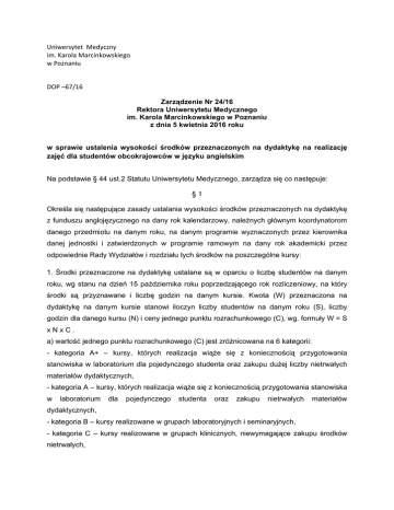 Zarządzenie nr 24/2016 - BIP - Uniwersytet Medyczny w Poznaniu