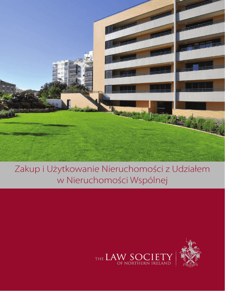 Zakup i Użytkowanie Nieruchomości z Udziałem w Nieruchomości Wspólnej ZAKUP I UŻYTKOWANIE NIERUCHOMOŚCI Z UDZIAŁEM W NIERUCHOMOŚCI WSPÓLNEJ Wstęp Wielu nabywców dowiaduje się, że nieruchomość, którą planują zakupić, znajduje się na osiedlu z tak zwaną nieruchomością wspólną, oraz wspólną infrastrukturą. Stanowią one często wymóg zaakceptowania planów inwestycyjnych, na podstawie których developer dostaje pozwolenie na budowę osiedla. Treść niniejszej ulotki obejmuje niektóre kwestie związane z zakupem nieruchomości - domu wolnostojącego, domu w zbudowie bliźniaczej lub szeregowej na danym osiedlu). Osoby, które rozważają zakup mieszkania powinny skorzystać z ulotki informacyjnej Law Society „Zakup i Użytkowanie Mieszkania”. Osoby, które rozważają zakup mieszkania na osiedlu z nieruchomością wspólną, powinny zapoznać się z treścią obu ulotek informacyjnych. Zasadniczo w ulotce poruszane są tylko kwestie ogólne. Zalecamy zatem szczegółowe omówienie z prawnikiem wszystkich aspektów związanych z zakupem wybranego mieszkania, między innymi dotyczących Jednostki Zarządzającej, opłat za usługi oraz pozostałych kwestii. Czym rożnią się osiedla z nieruchomością wspólną od innych osiedli? Główną cechą charakteryzującą nieruchomość na osiedlu z udziałem w nieruchomości wspólnej jest to, że właściciel domu korzysta z nieruchomości wspólnej, infrastruktury oraz usług wraz z pozostałymi właścicielami. W skład powierzchni wspólnych mogą wchodzić: • Ogrody i pasy zieleni • Place zabaw • Wewnętrzne drogi i ścieżki Właściciel nieruchomości posiada wyłączne prawo własności. Dodatkowo wraz z zakupem nieruchomości właściciel może być również odpowiedzialny wraz z pozostałymi właścicielami za utrzymanie, bieżącą konserwację oraz ubezpieczenie wspólnej nieruchomości, infrastruktury oraz usług. Na życzenie prawnik może uzyskać (i) kopię mapy lub plan danej nieruchomości oraz osiedla w celu określenia, co stanowi wyłączną własność a za co wspólnie ponoszą odpowiedzialność wszyscy właściciele oraz (ii) kopię aktu sprzedaży oraz innych istotnych dokumentów dotyczących zakupu. Dokumenty te mogą okazać się użyteczne w przyszłości. Prawnik będzie w stanie wytłumaczyć, co stanowi treść tych dokumentów. W jaki sposób zarządzana jest nieruchomość wspólna? Jednym z rozwiązań jest powołanie Jednostki Zarządzającej odpowiedzialnej za utrzymanie, bieżącą konserwację i ubezpieczenie nieruchomości wspólnej, instalacji oraz usług. W skład Jednostki Zarządzającej wchodzą właściciele, którzy posiadają równy udział w nieruchomości wspólnej, infrastrukturze i usługach oraz równe prawo głosu. W ulotce tej skupiliśmy się głównie na tej formie zarządzania, gdyż jest ona najczęściej stosowana. Inne formy zarządzania to: deweloper zachowuje prawo własności nieruchomości wspólnej, wszyscy właściciele domów posiadają prawo własności nieruchomości wspólnej, prywatna firma przejmuje funkcję właściciela oraz odpowiedzialność za utrzymanie nieruchomości wspólnej, oraz system praw/zobowiązań oraz praw/ służebności zostaje wprowadzony w celu zarządzania i utrzymania nieruchomości wspólnej. Czym jest opłata na rzecz utrzymania nieruchomości? Opłata na rzecz utrzymania nieruchomości uiszczana jest przez wszystkich właścicieli jako wkład na rzecz utrzymania, konserwacji bieżącej oraz ubezpieczenia nieruchomości wspólnej, instalacji praz usług. Przed podpisaniem umowy kupna nieruchomości z udziałem w nieruchomości wspólnej na danym osiedlu należy rozpatrzyć następujące kwestie: • Ile wynosi opłata na rzecz utrzymania nieruchomości? • Czy opłata uiszczana jest co miesiąc, pół roku czy raz w roku? • Jaka jest forma płatności (polecenie zapłaty, zlecenie stałe, czy czek)? • W jaki sposób wyliczana jest wielkość opłaty? • Czy opłata do chwili obecnej była uiszczana przez obecnego właściciela? • Czy istnieje fundusz remontowy? • Czy wielkość opłaty jest odpowiednia w stosunku do charakteru osiedla? • Czy stać mnie na uiszczenie opłaty wraz z pozostałymi wydatkami związanymi z nieruchomością? Na co należy zwrócić uwagę, rozważając zakup nieruchomości na osiedlu z nieruchomością wspólną? Kluczową kwestią jest rozpoznanie, w jaki sposób dana nieruchomość jest zarządzana oraz czy sposób ten jest wydajny. Prawnik powinien pomóc w tej kwestii. Jeśli Jednostka Zarządzająca została powołana należy wówczas uzyskać: • Kopie sprawozdania z ostatniego spotkania • Kopie korespondencji dotyczącej jednostki zarządzającej lub opłat na rzecz utrzymania nieruchomości • Kopie ostatniego wyciągu z dostępnego konta bankowego • Szczegóły dotyczące planowanych przyszłych wydatków • Szczegóły dotyczące funduszu remontowego • Szczegóły dotyczące ustaleń polisy ubezpieczenia od odpowiedzialności cywilnej • Czy został wyznaczony reprezentant ds. zarządzania? Jeśli tak, to na jakiej podstawie? • Pozostałe istotne dokumenty Należy pamiętać, że wysokość opłaty na rzecz zarządzania nieruchomością może ulec zmianie z roku na rok i w przyszłości może się zwiększyć. Powyższe informacje oraz konsultacja z prawnikiem umożliwią rozsądną ocenę tego, czy nieruchomość jest aktualnie zarządzana w sposób wydajny, jakie jest prawdopodobieństwo, że w bliskiej przyszłości koniecznym będzie dokonanie znacznych inwestycji w celu utrzymania nieruchomości oraz czy istnieje możliwość skorzystania z funduszu remontowego na opłacenie koniecznych inwestycji. Co to jest fundusz remontowy? Fundusz remontowy stanowi część funduszu zebranego z opłat na rzecz utrzymania nieruchomości i jest przeznaczony na pokrycie kosztów znacznych inwestycji związanych z zapewnieniem zrównoważonego rozwoju osiedla