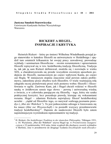 RICKERT A HEGEL. INSPIRACJE I KRYTYKA