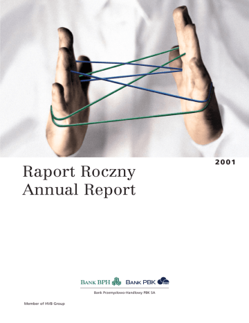 Raport Roczny Annual Report Bank Przemys∏owo-Handlowy PBK SA Member of HVB Group 2001 Raport Roczny Annual Report Bank Przemys∏owo-Handlowy PBK SA Member of HVB Group 2001 kliknij numer strony / click on page number Spis treÊci Contents WYBRANE DANE FINANSOWE 4 FINACIAL HIGHLIGHTS I. LIST PRZEWODNICZÑCEJ 6 I. LET TER FROM THE CHAIRPERSON OF THE RADY NADZORCZEJ SUPERVISORY BOARD II. LIST PREZESA 10 ZARZÑDU BANKU MANAGEMENT BOARD III. W¸ADZE BANKU 16 III. BANK AUTHORITIES RADA NADZORCZA 16 SUPERVISORY BOARD ZARZÑD BANKU 18 MANAGEMENT BOARD IV. FUZJA BPH SA I PBK SA 22 IV. BPH SA AND PBK SA MERGER a. Zmiany w strukturze w∏asnoÊciowej b. Przebieg fuzji c. Strategia nowego Banku i spodziewane synergie 22 a. Changes in Ownership Structure b. Merger Process c. New-Bank Strategy and Expected Synergies V. POZYCJA BPH PBK SA 30 23 26 NA GIE¸DZIE 3 II. LET TER FROM THE PRESIDENT OF THE V. BPH PBK SA PERFORMANCE ON THE WARSAW STOCK EXCHANGE VI. DZIA¸ALNOÂå OPERACYJNA 34 VI. OPERATIONS a. Uwarunkowania zewn´trzne b. BankowoÊç detaliczna c. BankowoÊç korporacyjna d. BankowoÊç hipoteczna e. Dzia∏alnoÊç na rynkach finansowych f. Dzia∏alnoÊç maklerska 34 51 a. External Factors b. Retail Banking c. Corporate Banking d. Mortgage Banking e. Financial Market Activities f. Brokerage Activities VII. ROZWÓJ AUTOMATYZACJI, 54 VII. AUTOMATION, IT AND TECHNOLOGY 36 43 48 49 DEVELOPMENT INFORMATYKI I TECHNOLOGII VIII. KADRY IX. STRUKTURA ORGANIZACYJNA 56 59-62 X. WSPÓ¸PRACA Z MI¢DZYNARODOWYMI 64 VIII. HUMAN RESOURCES IX. ORGANIZATIONAL STRUCTURE X. COOPERATION WITH INTERNATIONAL I ZAGRANICZNYMI INSTYTUCJAMI FINANSO - AND FOREIGN FINANCIAL INSTITUTIONS WYMI ORAZ AGENCJAMI RATINGOWYMI AND RATING AGENCIES XI. GRUPA KAPITA¸OWA BPH PBK SA 66 XI. BPH PBK SA GROUP XII. SPRAWOZDANIE FINANSOWE 70 XII. FINANCIAL STATEMENTS a. Opinia bieg∏ego rewidenta b. Bilans c. Pozycje pozabilansowe d. Rachunek zysków i strat e. Skrót komentarza do wyników finansowych f. Podstawowe ró˝nice pomi´dzy sprawozdaniem sporzàdzonym wed∏ug polskich standardów rachunkowoÊci (PAS) a sprawozdaniem sporzàdzonym wed∏ug mi´dzynarodowych standardów rachunkowoÊci (IAS) 71 a. Auditor’s Opinion b. Balance Sheet c. Off-Balance Sheet Items d. Profit and Loss Account e. Summary of Notes to Financial Statements f. Basic Differences between Statements prepared according to Polish Accounting Standards (PAS) and International Accounting Standards (IAS) 73 75 76 77 82 Wybrane dane finansowe Financial Highlights 4 Wybrane dane finansowe na 31.12.2001 r. w tys. PLN PLN ’000s w tys. EUR EUR ’000s Financial Highlights as at 31 December 2001 Zysk brutto Zysk netto Aktywa razem Kapita∏ w∏asny Kapita∏ akcyjny 209.529 335.583 43.391.405 4.945.234 143.581 59,493 95,285 12,320,453 1,404,138 40,768 Gross Profit Net Profit Balance Sheet Total Shareholders’ Equity Share Capital Liczba akcji (w sztukach) Wspó∏czynnik wyp∏acalnoÊci (w %) ROE (w %) 28.716.230 17,36 6,9 Spis TreÊci / Contents Number of Shares Capital Adequacy Ratio (%) ROE (%) ALICJA KORNASIEWICZ Przewodniczàca Rady Nadzorczej Chairperson of the Supervisory Board 5 I. List Przewodniczàcej Rady Nadzorczej I. Letter from the Chairperson of the Supervisory Board 6 SZANOWNI PA¡STWO, AKCJONARIUSZE I KLIENCI BANKU PRZEMYS¸OWO HANDLOWEGO PBK SA LADIES AND GENTLEMEN, SHAREHOLDERS AND CUSTOMERS OF BANK PRZEMYS¸OWO -HANDLOWY PBK SA Sukces fuzji prawnej Banku Przemys∏owoHandlowego z Powszechnym Bankiem Kredytowym niewàtpliwie zapami´tamy jako najwa˝niejsze wydarzenie w roku 2001. Zakoƒczenie tego etapu pozwoli∏o naszemu Bankowi na rozpocz´cie realizacji nowej strategii, której g∏ównym celem jest stworzenie innowacyjnego, wiodàcego banku w Polsce. Przy wsparciu Banku Austria Creditanstalt (Member of HVB Group) zamierzamy w kompleksowy sposób odpowiedzieç na rosnàce oczekiwania naszych Klientów indywidualnych oraz instytucjonalnych. We will all undoubtedly recall the legal merger between Bank Przemys∏owo-Handlowy and Powszechny Bank Kredytowy as our most important success of the year 2001. In completing this phase of integration, BPH PBK may now move forward with the implementation of a new strategy, the primary objective of which is to establish an innovative and leading bank on the Polish market. In association with Bank Austria Creditanstalt (Member of HVB Group), and with its support, we intend to meet and exceed the expectations of our individual and institutional Customers. Fuzja znaczàco wzmocni∏a potencja∏ konkurencyjny Banku oraz podnios∏a jego pozycj´ w sektorze bankowym pod wzgl´dem sumy bilansowej oraz udzia∏ów w rynku. Akcje BPH PBK nale˝à do najbardziej The merger has enhanced the competitive position of BPH PBK, improving our standing in the banking sector in terms of total assets and market share. BPH PBK shares are among the most liquid equities listed on the Warsaw Spis TreÊci / Contents 7 p∏ynnych wÊród notowanych na WGPW oraz banków w naszym regionie. Stock Exchange, indeed among all the banks in our region as well. W ubieg∏ym roku Rada Nadzorcza i Zarzàd podj´∏y nowe wyzwania wynikajàce ze zmian zachodzàcych w otoczeniu konkurencyjnym naszego Banku. O dalszym rynkowym sukcesie Banku b´dzie decydowaç sposób, w jaki BPH PBK zaadoptuje si´ do warunków rosnàcej konkurencji na rynku us∏ug finansowych oraz niestabilnej koniunktury gospodarczej. Last year the Management and Supervisory Boards responded to the new challenges facing BPH PBK arising from the changes in the competitive environment. BPH PBK’s further market success will depend on its ability to adapt to the conditions of increasing competitiveness in the financial services sector and unstable economic climate. W 2001 roku podj´liÊmy dzia∏ania o kluczowym znaczeniu dla dalszego rozwoju Banku, zmierzajàce poprzez realizacj´ nowej strategii do wzrostu jego rentownoÊci oraz wartoÊci rynkowej. Przyj´ta strategi