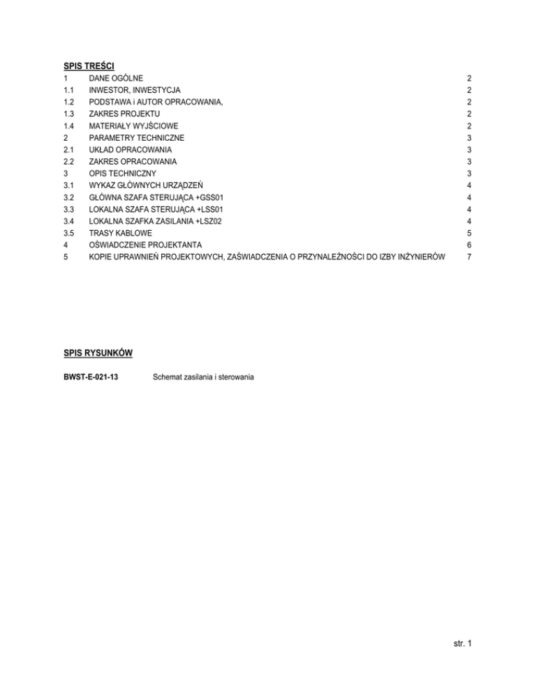 Załącznik nr 7.3 – Projekt technologiczny. Branża: Elektryczna