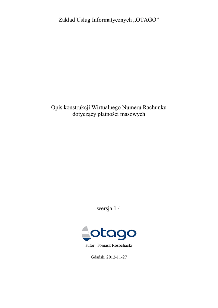 Niniejszy załącznik określa konstrukcję Wirtualnego Numeru Rachunku, pola dokumentu płatniczego, jakie