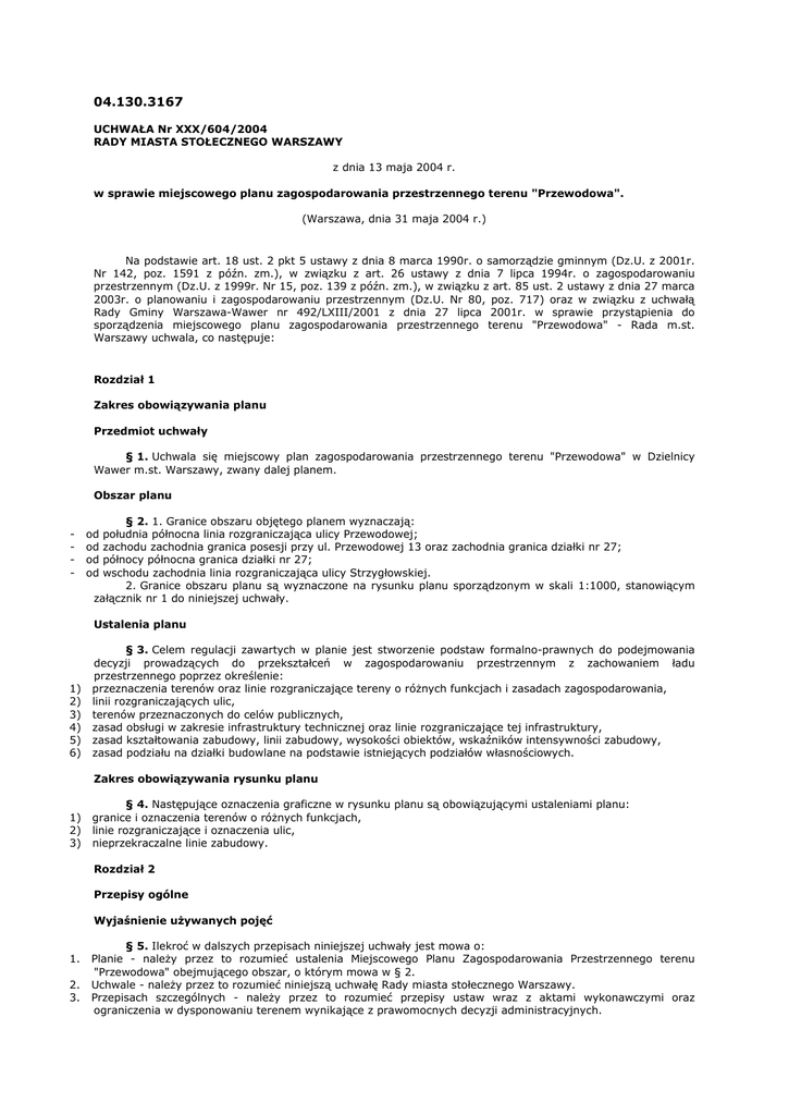 UCHWAŁA Nr XXX/604/2004 RADY MIASTA STOŁECZNEGO