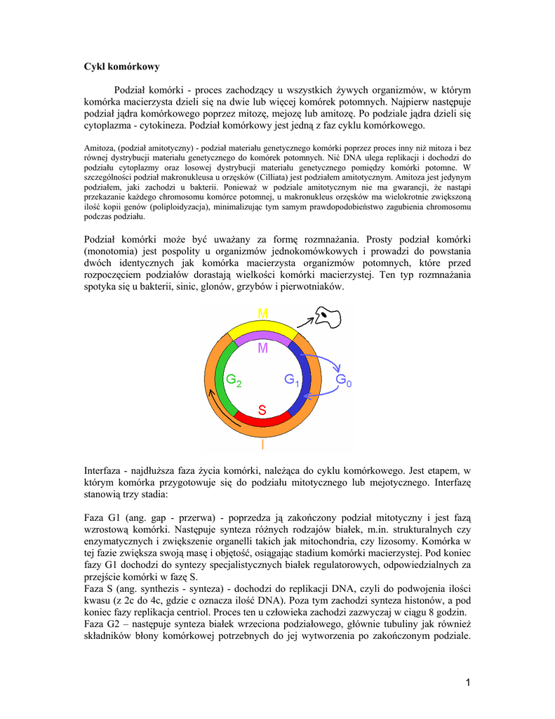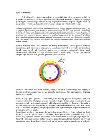 1 Cykl komórkowy Podział komórki - proces zachodzący u